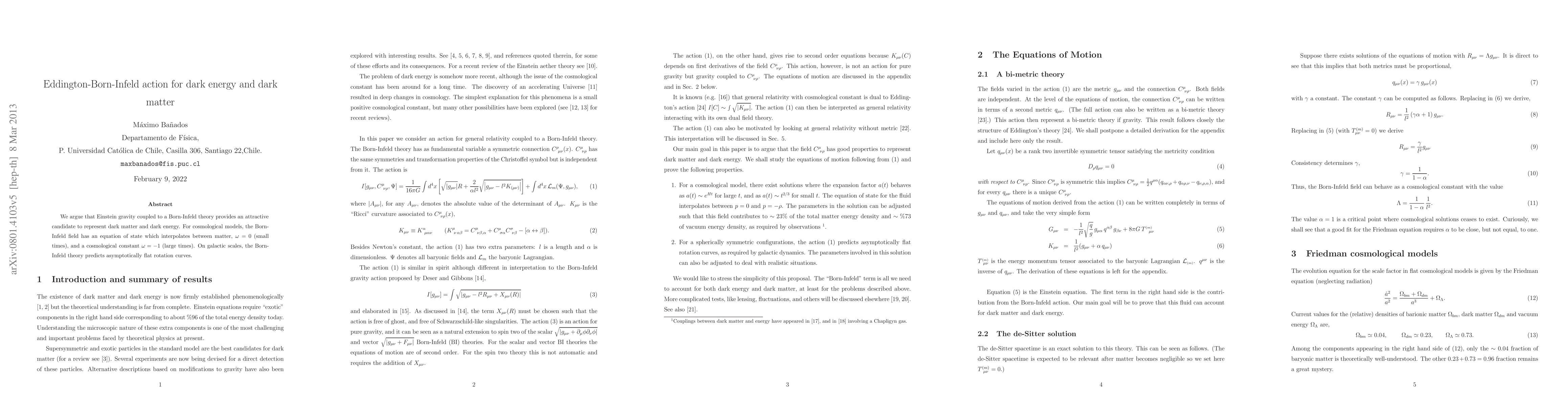 Summary: This paper proposes that coupling Einstein gravity with Born-Infeld theory can model dark matter and dark energy, with the Born-Infeld field interpolating between matter-like behavior at small scales and cosmological constant behavior at large scales, also predicting flat rotation curves on galactic scales.