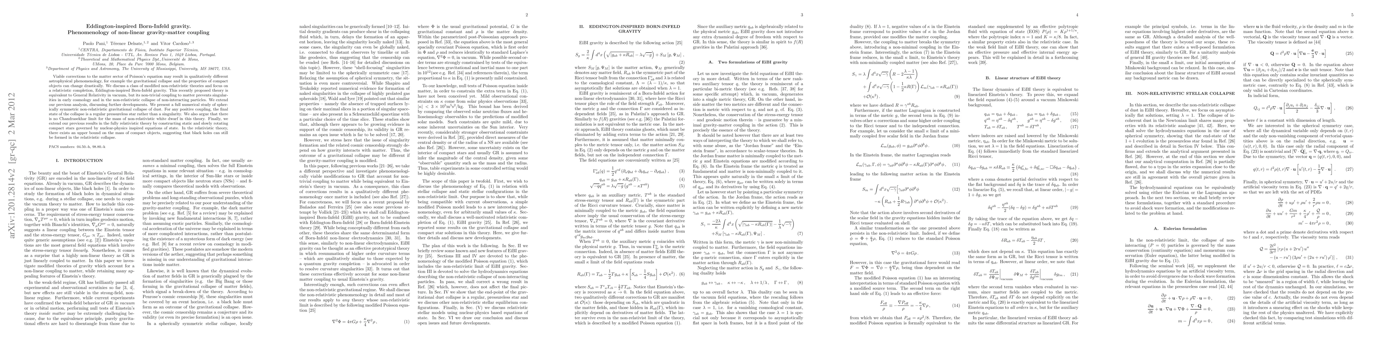 Viable corrections to the matter sector of Poisson's equation may result in qualitatively different astrophysical phenomenology, for example the gravitational collapse and the properties of compact objects can change drastically. We discuss a class of modified non-relativistic theories and focus on a relativistic completion, Eddington-inspired Born-Infeld gravity. This recently proposed theory is equivalent to General Relativity in vacuum, but its non-trivial coupling to matter prevents singularities in early cosmology and in the non-relativistic collapse of non-interacting particles. We extend our previous analysis, discussing further developments. We present a full numerical study of spherically symmetric non-relativistic gravitational collapse of dust. For any positive coupling, the final state of the collapse is a regular pressureless star rather than a singularity. We also argue that there is no Chandrasekhar limit for the mass of non-relativistic white dwarf in this theory. Finally, we extend our previous results in the fully relativistic theory by constructing static and slowly rotating compact stars governed by nuclear-physics inspired equations of state. In the relativistic theory, there exists an upper bound on the mass of compact objects, suggesting that black holes can still be formed in the relativistic collapse.