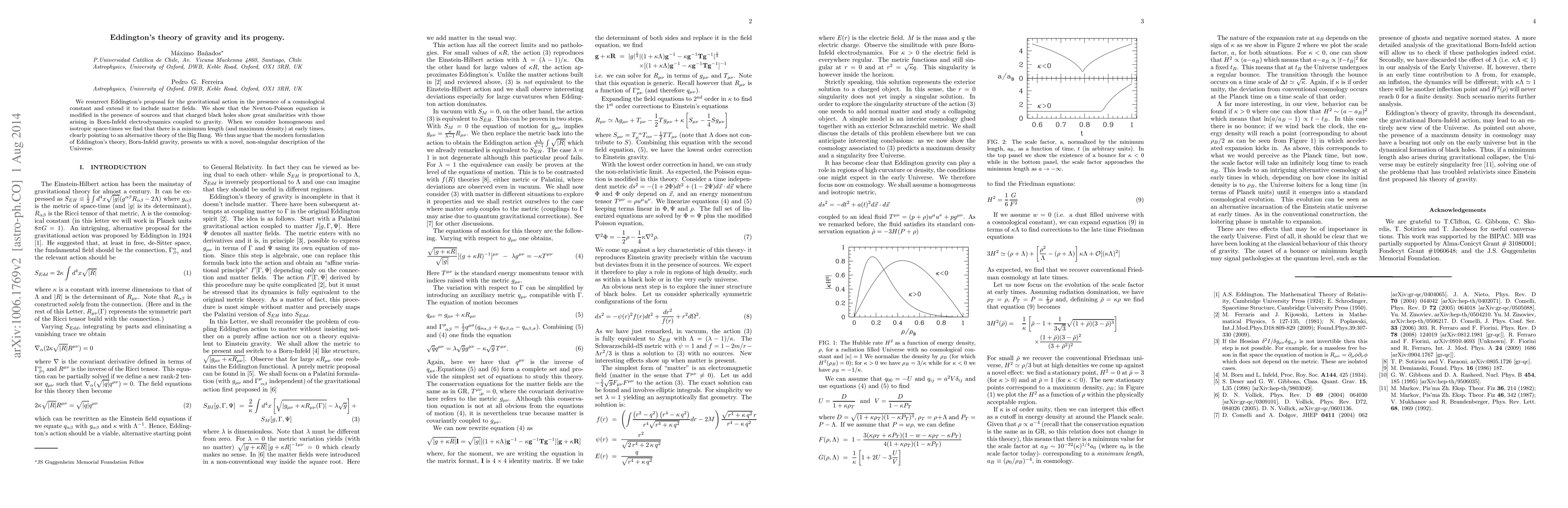 We resurrect Eddington's proposal for the gravitational action in the presence of a cosmological constant and extend it to include matter fields. We show that the Newton-Poisson equation is modified in the presence of sources and that charged black holes show great similarities with those arising in Born-Infeld electrodynamics coupled to gravity. When we consider homogeneous and isotropic space-times we find that there is a minimum length (and maximum density) at early times, clearly pointing to an alternative theory of the Big Bang. We thus argue that the modern formulation of Eddington's theory, Born-Infeld gravity, presents us with a novel, non-singular description of the Universe.