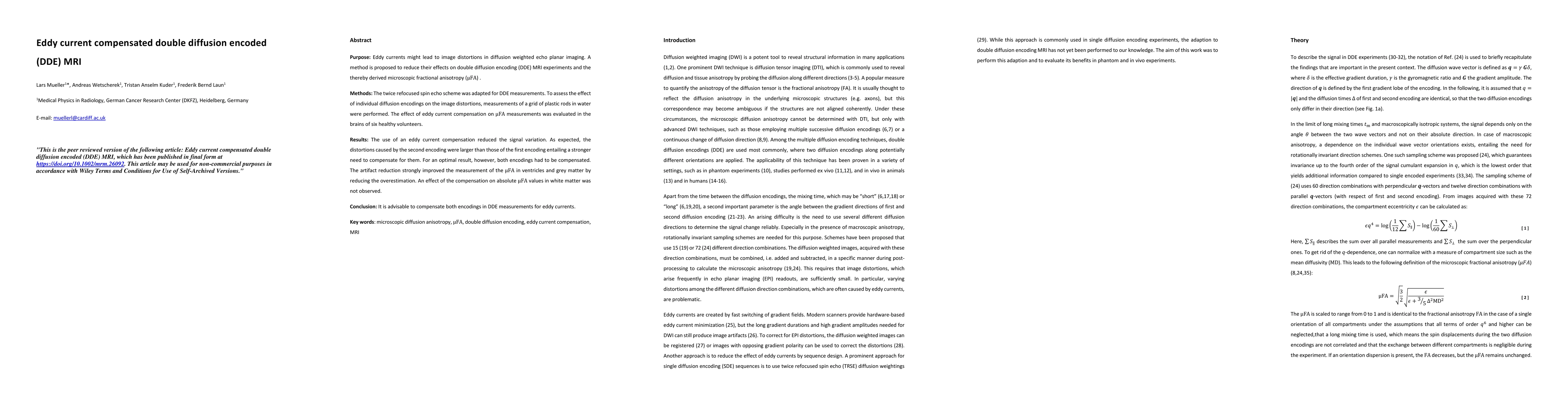 This study proposes a method to mitigate eddy current-induced distortions in double diffusion encoded MRI, showing that compensating both encodings reduces signal variation and improves the measurement of microscopic fractional anisotropy in ventricles and grey matter, without affecting white matter values.