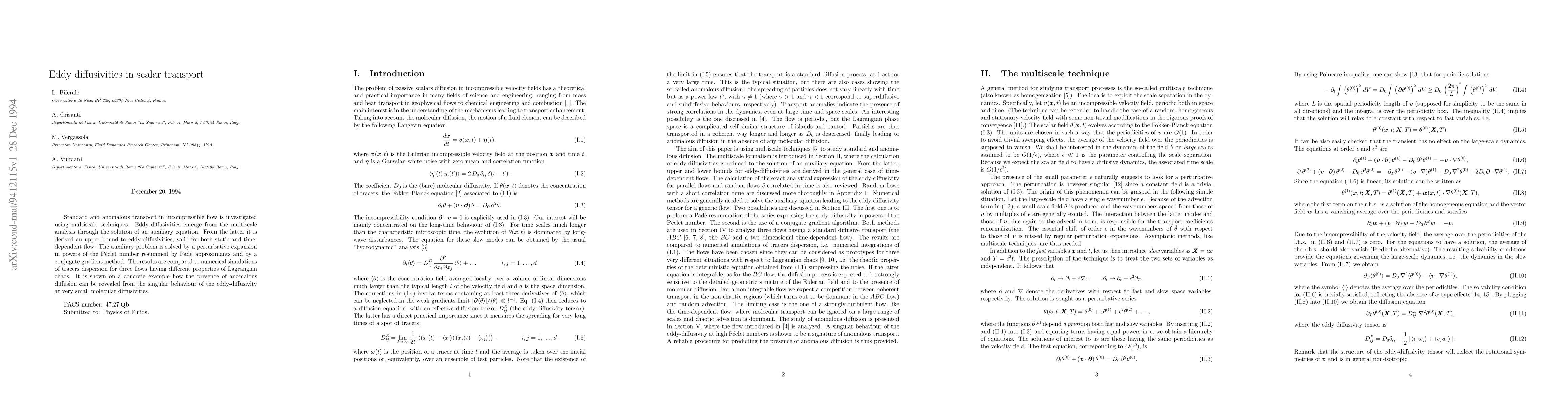 Researchers investigate eddy diffusivities in scalar transport using multiscale techniques, finding an upper bound for these values that can reveal anomalous diffusion at very small molecular diffusivities.