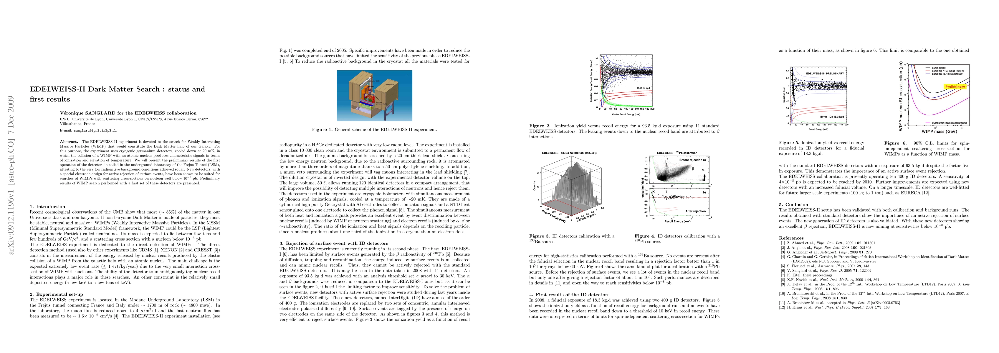 The EDELWEISS-II experiment uses cryogenic germanium detectors cooled to 20 mK to search for Weakly Interacting Massive Particles (WIMPs) by detecting nuclear recoils from WIMP-nucleus elastic collisions. The detectors simultaneously measure phonon and ionization signals to discriminate between nuclear and electronic recoils.