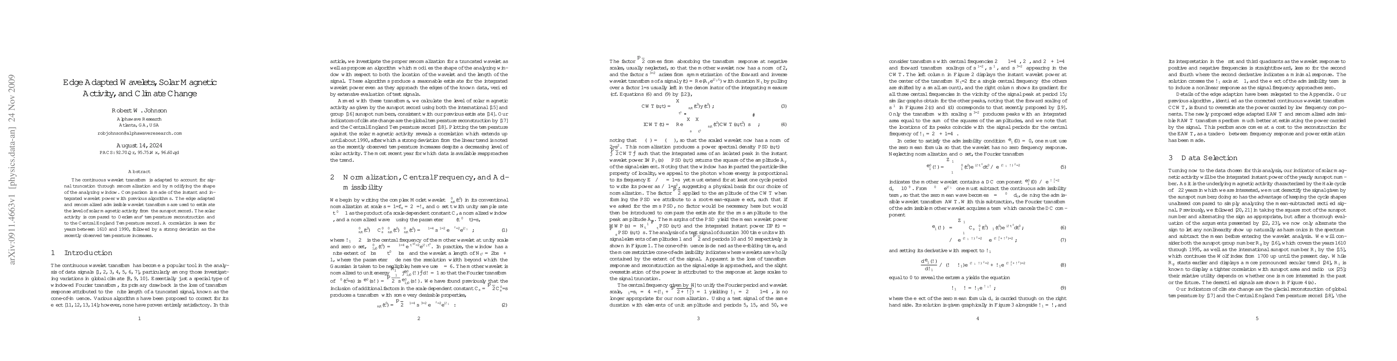 The continuous wavelet transform is adapted to account for signal truncation through renormalization and by modifying the shape of the analyzing window. Comparison is made of the instant and integrated wavelet power with previous algorithms. The edge adapted and renormalized admissible wavelet transforms are used to estimate the level of solar magnetic activity from the sunspot record. The solar activity is compared to Oerlemans' temperature reconstruction and to the Central England Temperature record. A correlation is seen for years between 1610 and 1990, followed by a strong deviation as the recently observed temperature increases.