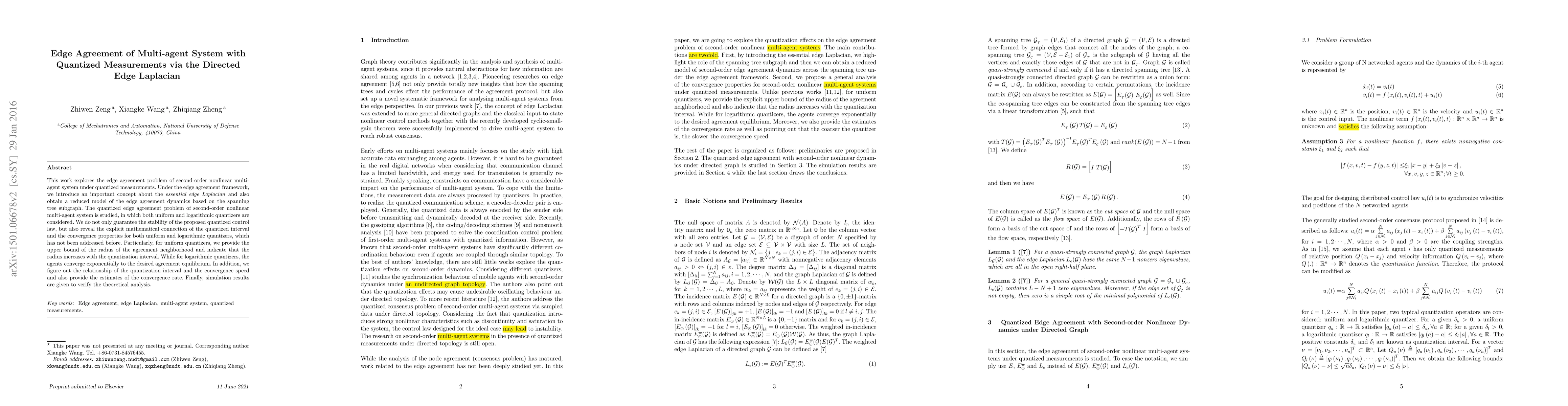 This paper investigates the edge agreement problem in second-order nonlinear multi-agent systems under quantized measurements, introducing a reduced model based on the spanning tree subgraph. The study reveals the stability of the proposed quantized control law and provides explicit connections between quantization intervals and convergence properties for both uniform and logarithmic quantizers, offering new insights into convergence rates and neighborhood radii.