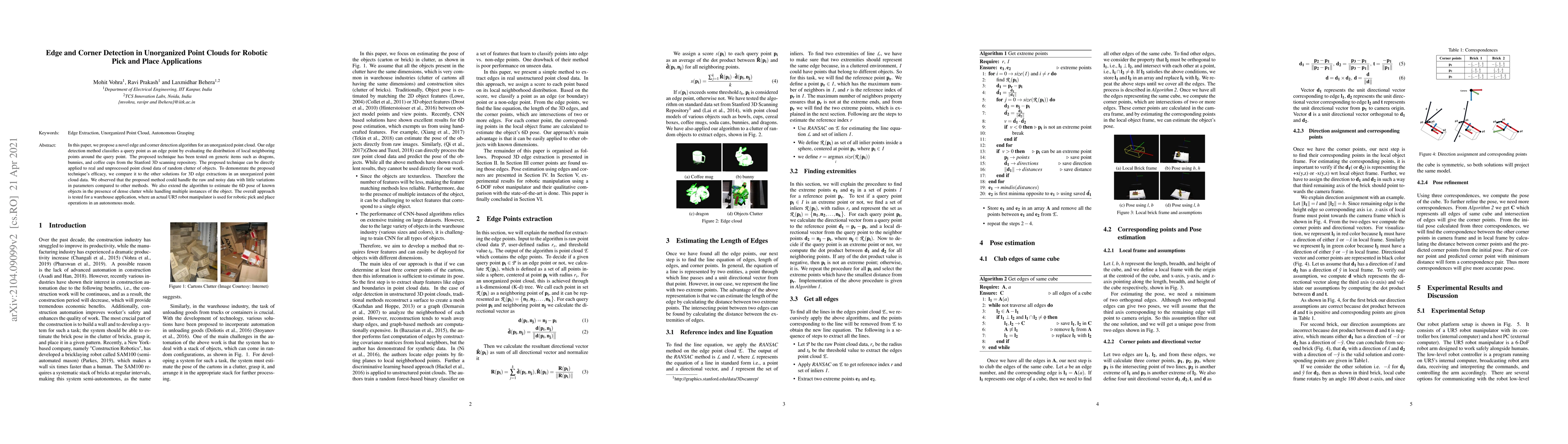 This paper introduces a novel edge and corner detection algorithm for unorganized point clouds, effectively classifying edge points by analyzing local point distributions. The method is tested on various objects and demonstrates superior performance in handling raw and noisy data, also extending to 6D pose estimation for robotic pick and place tasks in cluttered environments.