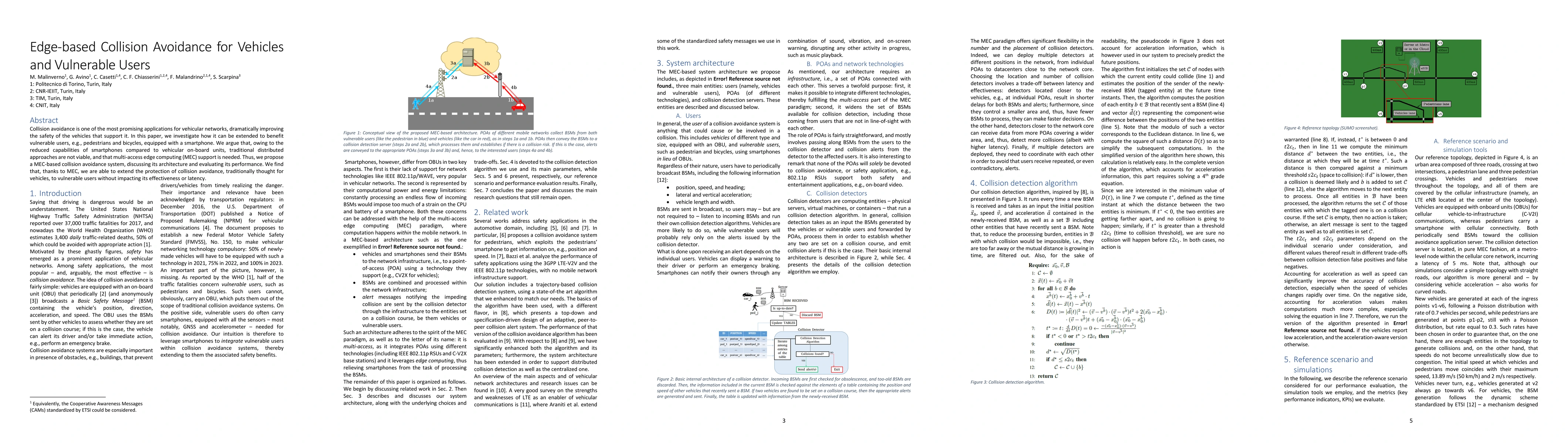 This paper proposes a multi-access edge computing (MEC) based architecture for collision avoidance in vehicular networks, extending its benefits to vulnerable users like pedestrians and cyclists. The study finds that MEC enables effective collision avoidance for these users without compromising performance or latency, addressing the limitations of traditional distributed approaches.