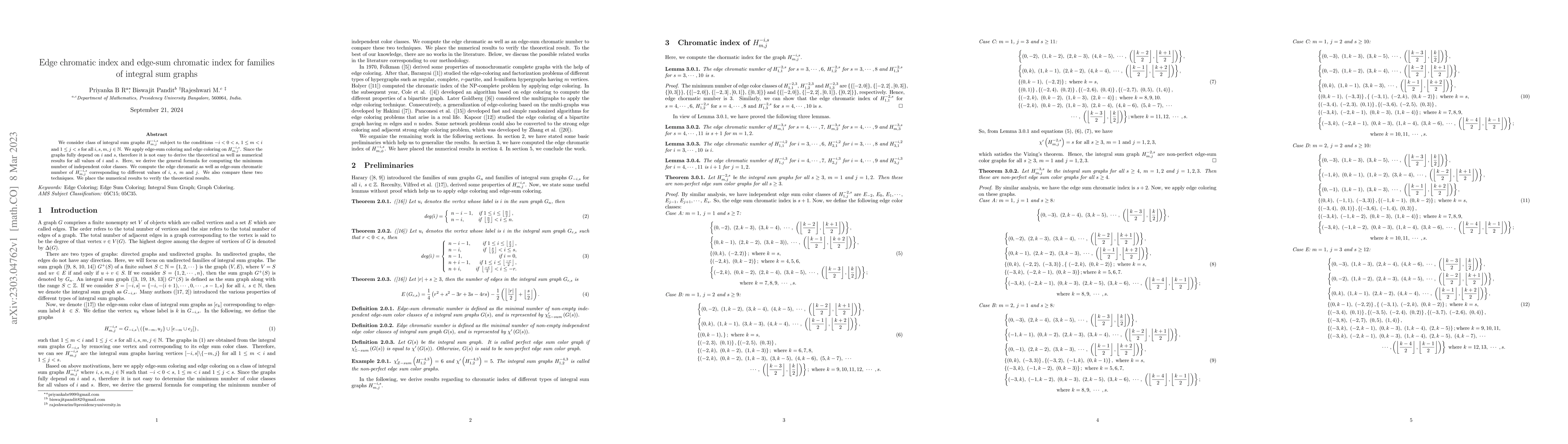 This paper explores the edge chromatic index and edge-sum chromatic index for a class of integral sum graphs $H^{-i,s}_{m,j}$ under specific conditions. It derives a general formula for the minimum number of independent color classes and computes both edge chromatic and edge-sum chromatic numbers for various parameters, comparing the two techniques and verifying results numerically.