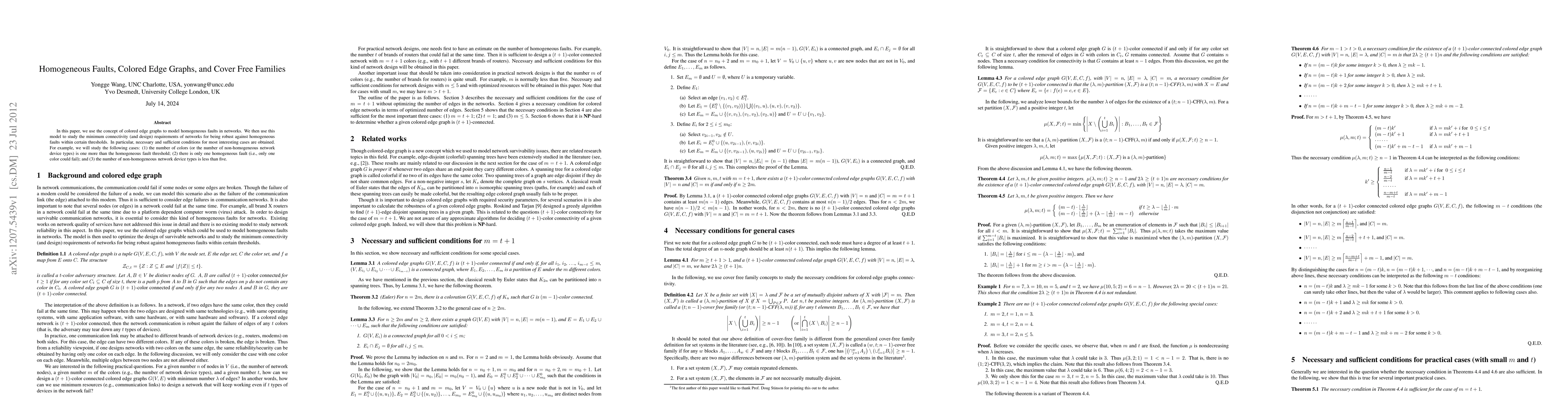 This paper explores edge-colored graphs to model homogeneous faults in networks, determining minimum connectivity requirements for robustness against certain fault thresholds.