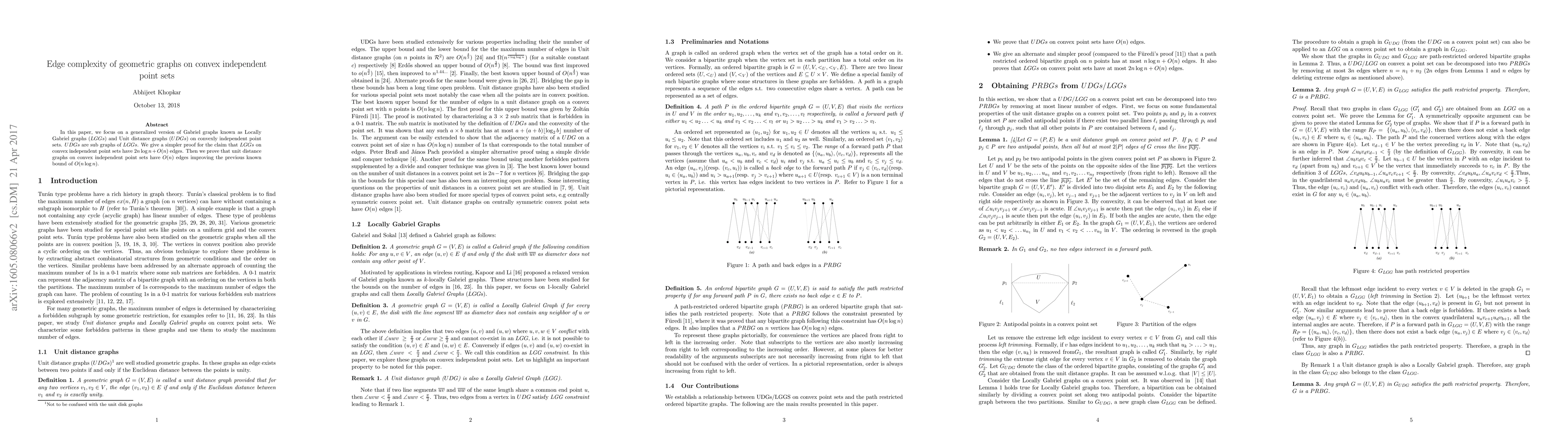 This paper presents a simplified proof for the edge count of Locally Gabriel graphs on convexly independent point sets, showing they have $2n \log n + O(n)$ edges. It also improves the edge count for Unit distance graphs on such sets to $O(n)$, surpassing the previous $O(n \log n)$ bound.