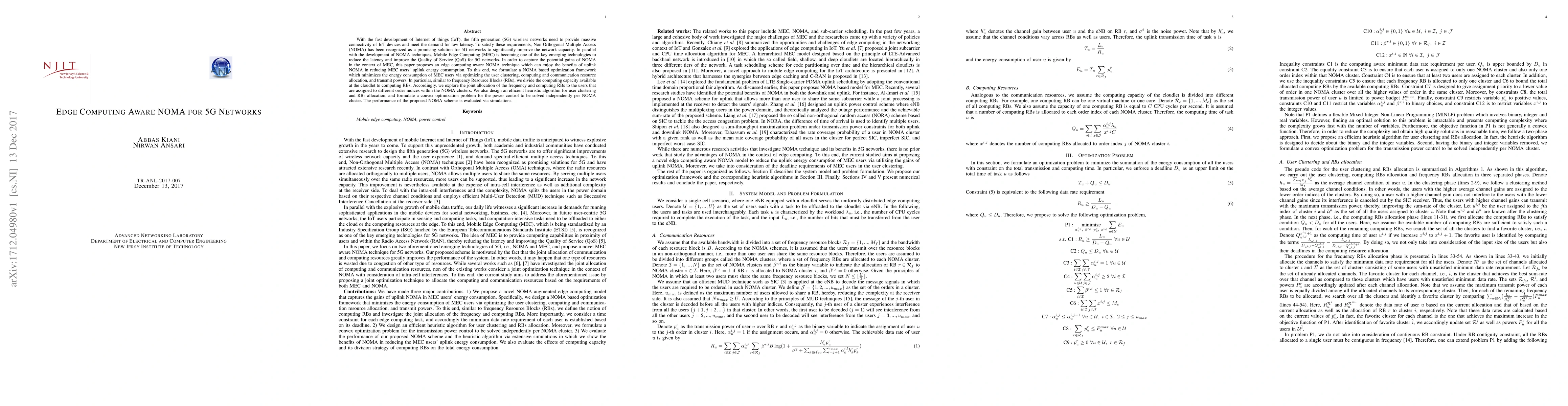 This paper proposes an edge computing aware NOMA technique for 5G networks to enhance network capacity and reduce latency. It formulates an optimization framework to minimize MEC users' energy consumption through user clustering, resource allocation, and power control, leveraging joint frequency and computing resource allocation.