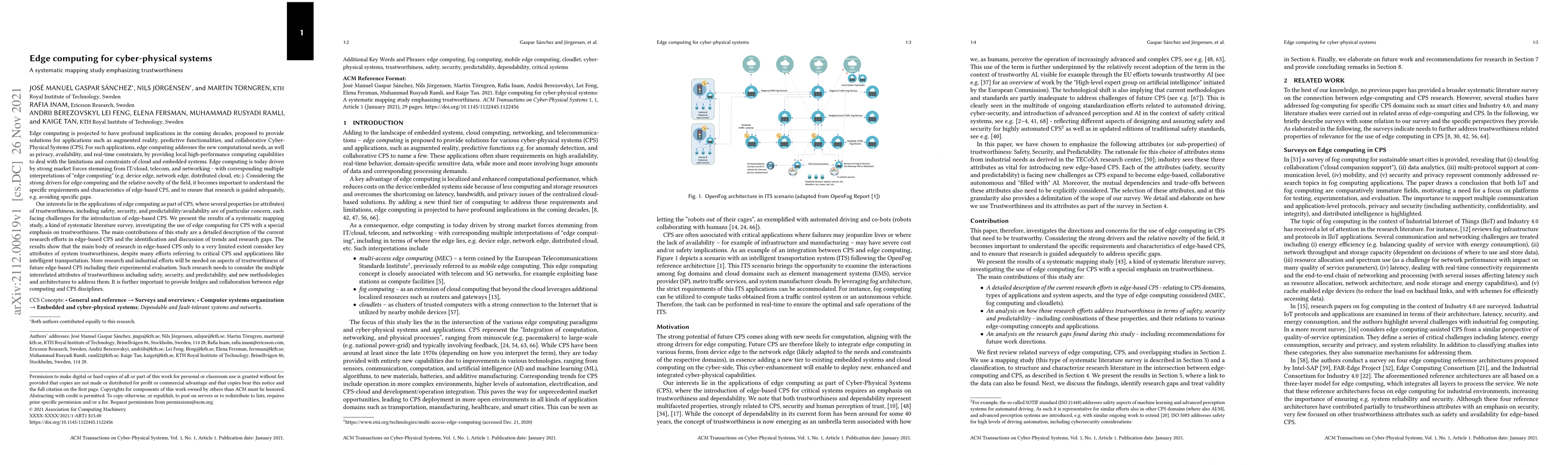 This paper conducts a systematic mapping study on edge computing for Cyber-Physical Systems (CPS), emphasizing trustworthiness attributes like safety, security, and predictability. It highlights current research gaps and calls for more comprehensive studies on the trustworthiness aspects of future edge-based CPS, stressing the need for interdisciplinary collaboration.