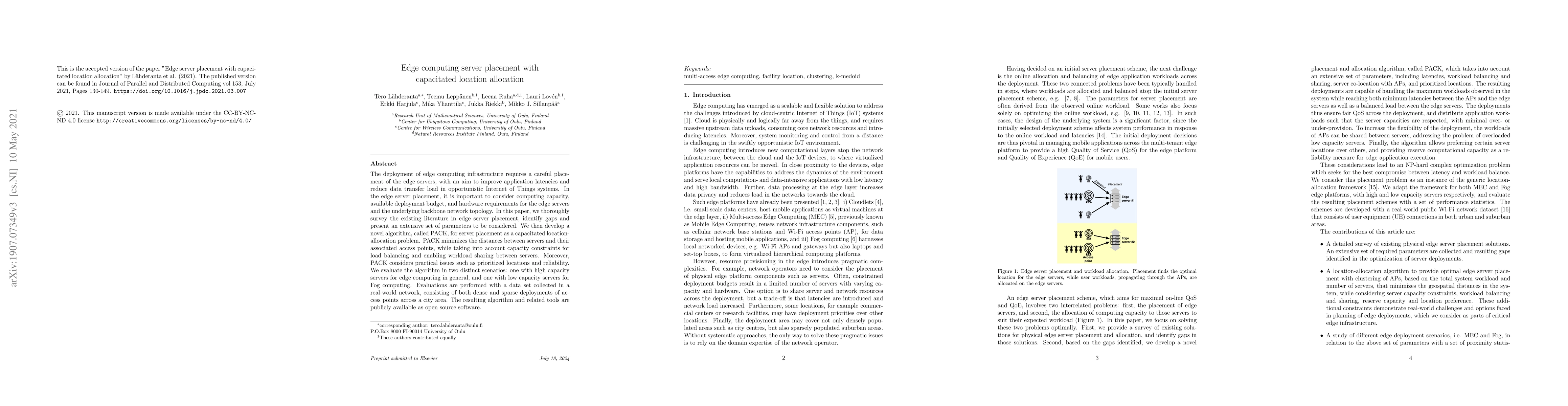 This paper surveys existing literature on edge server placement, identifies gaps, and proposes a novel algorithm, PACK, to optimize server placement as a capacitated location-allocation problem. PACK minimizes distances and considers capacity constraints, practical issues, and reliability, evaluated in scenarios for both edge and Fog computing.