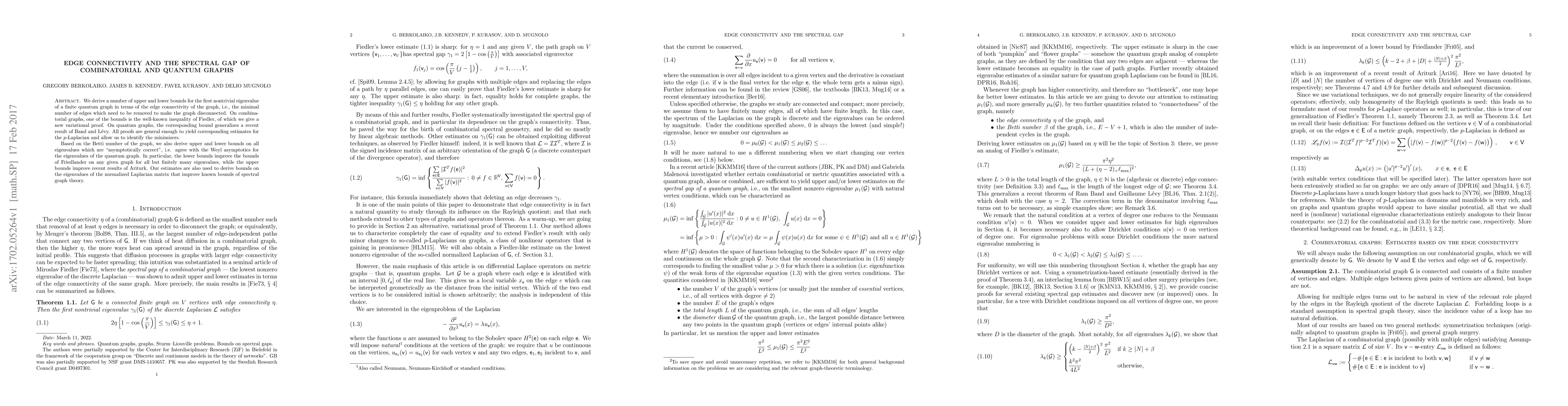 The paper establishes new bounds for the first nontrivial eigenvalue of combinatorial and quantum graphs based on edge connectivity, improving existing inequalities.
