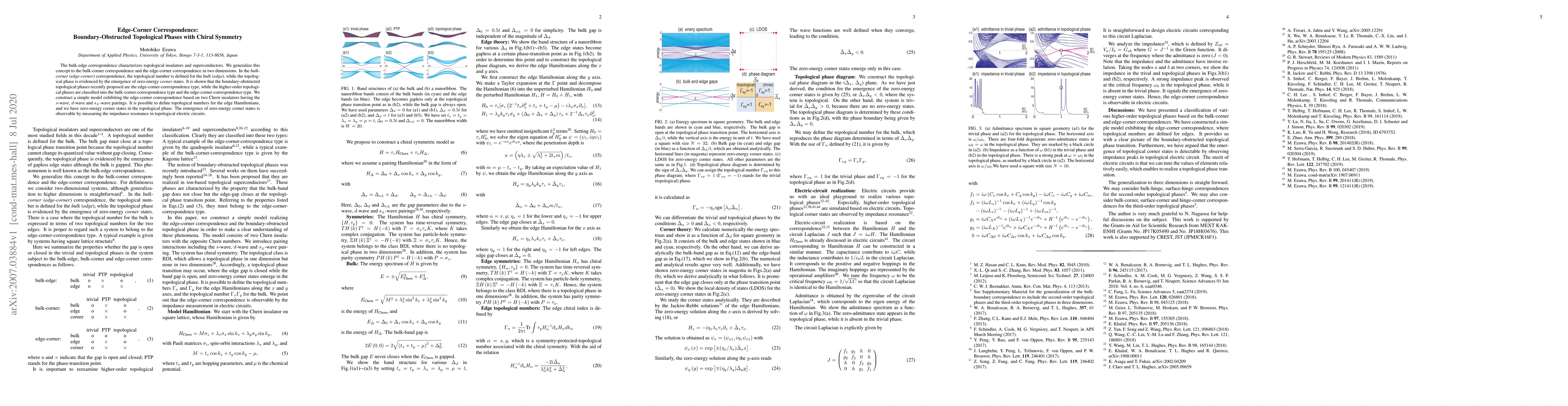 This paper generalizes the bulk-edge correspondence to the bulk-corner and edge-corner correspondences in 2D topological insulators, identifying boundary-obstructed phases as edge-corner types and higher-order phases into bulk-corner and edge-corner types. A model based on Chern insulators demonstrates zero-energy corner states observable via impedance resonance.