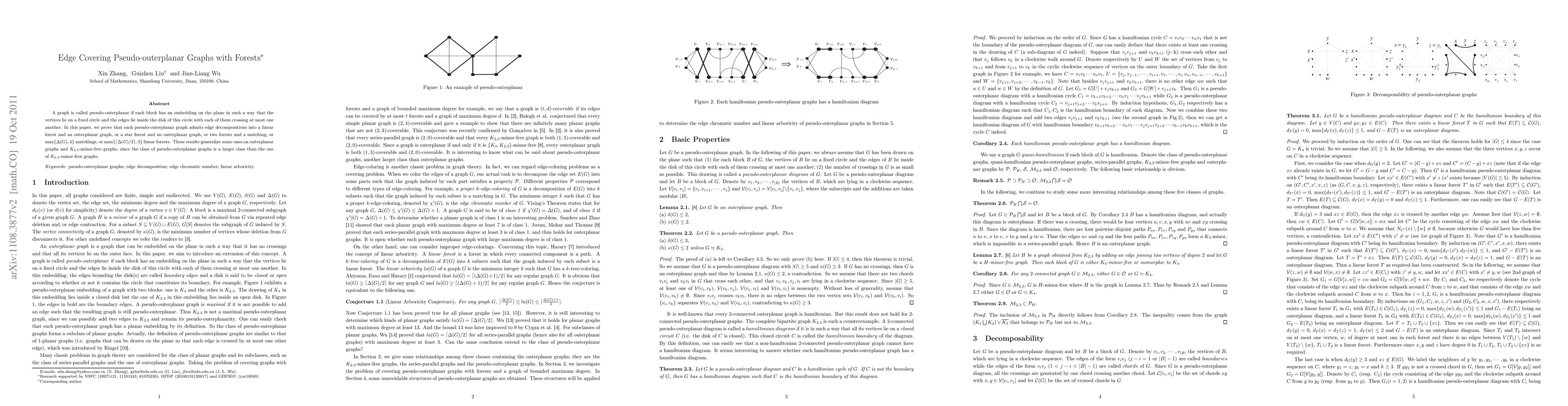 This paper proves edge decompositions for pseudo-outerplanar graphs into various combinations of forests, outerplanar graphs, stars, and matchings, generalizing results for outerplanar and $K_{2,3}$-minor-free graphs. It extends these decompositions to a broader class of graphs.