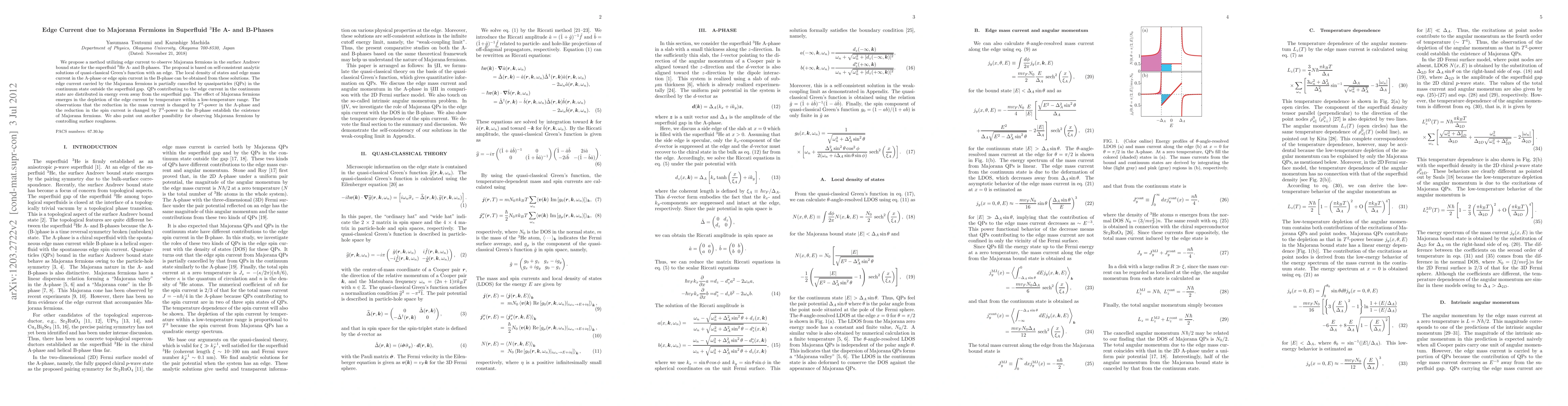 This paper proposes a method to detect Majorana fermions in superfluid $^3$He A- and B-phases through edge currents, utilizing quasi-classical Green's functions. The observed temperature-dependent reduction in edge mass or spin current confirms the presence of Majorana fermions, with distinct $T^2$ and $T^3$ dependencies in the A- and B-phases, respectively.