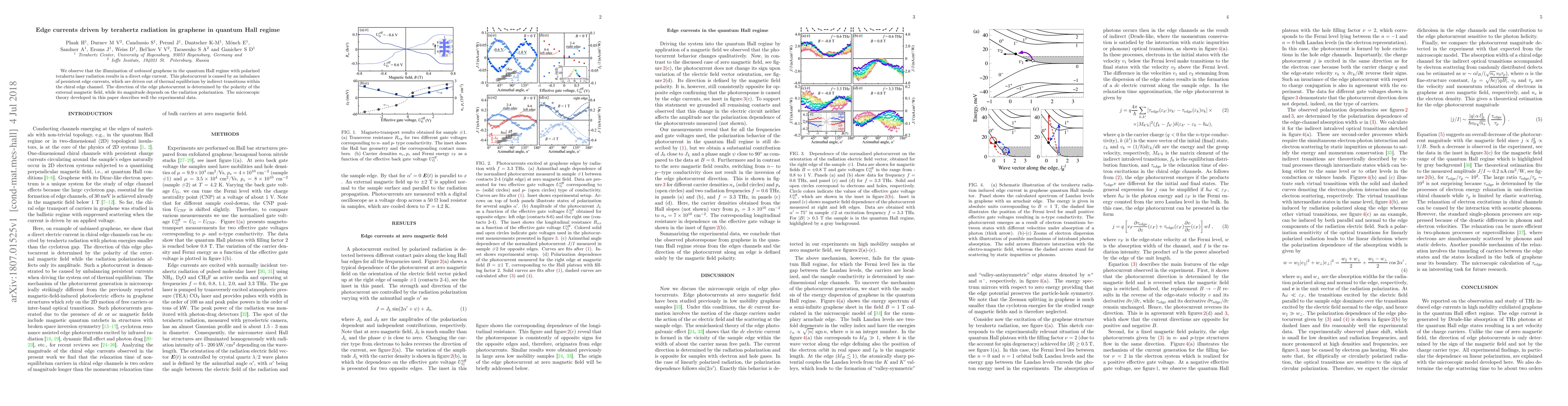 This study reveals that terahertz radiation can induce a direct edge current in unbiased graphene in the quantum Hall regime, driven by an imbalance of persistent edge currents caused by transitions within the chiral edge channel. The edge photocurrent's direction is influenced by the external magnetic field's polarity, and its magnitude by the radiation polarization, with a developed microscopic theory matching experimental observations.