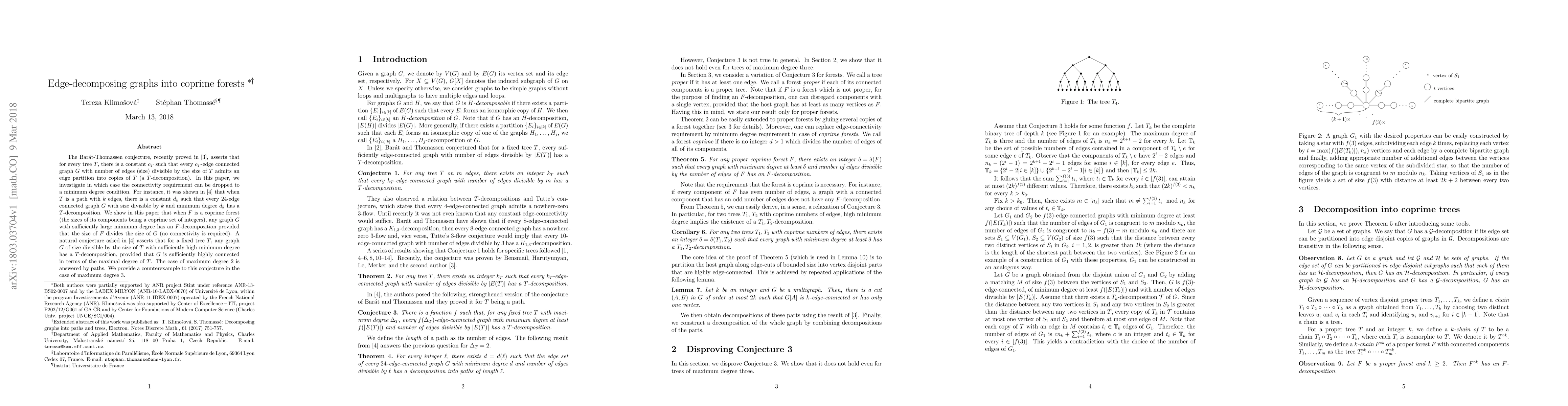 The Barat-Thomassen conjecture, recently proved in [Bensmail et al.: A proof of the Barat-Thomassen conjecture. J. Combin. Theory Ser. B, 124:39-55, 2017.], asserts that for every tree T, there is a constant $c_T$ such that every $c_T$-edge connected graph G with number of edges (size) divisible by the size of T admits an edge partition into copies of T (a T-decomposition). In this paper, we investigate in which case the connectivity requirement can be dropped to a minimum degree condition. For instance, it was shown in [Bensmail et al.: Edge-partitioning a graph into paths: beyond the Barat-Thomassen conjecture. arXiv:1507.08208] that when T is a path with k edges, there is a constant $d_k$ such that every 24-edge connected graph G with size divisible by k and minimum degree $d_k$ has a T-decomposition. We show in this paper that when F is a coprime forest (the sizes of its components being a coprime set of integers), any graph G with sufficiently large minimum degree has an F-decomposition provided that the size of F divides the size of G (no connectivity is required). A natural conjecture asked in [Bensmail et al.: Edge-partitioning a graph into paths: beyond the Barat-Thomassen conjecture. arXiv:1507.08208] asserts that for a fixed tree T, any graph G of size divisible by the size of T with sufficiently high minimum degree has a T-decomposition, provided that G is sufficiently highly connected in terms of the maximal degree of T. The case of maximum degree 2 is answered by paths. We provide a counterexample to this conjecture in the case of maximum degree 3.