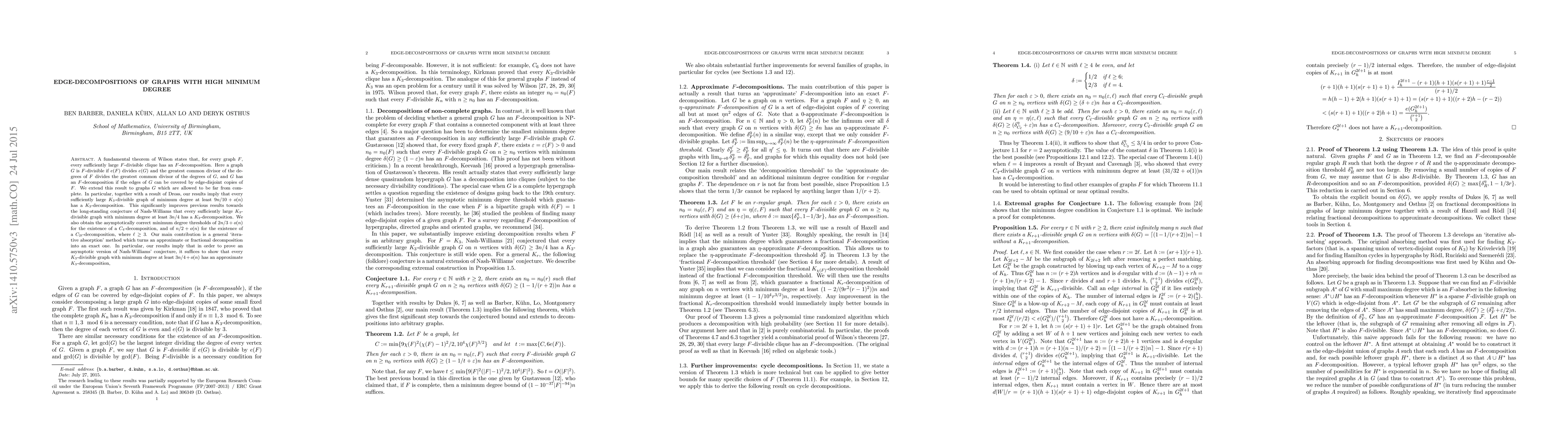 This paper extends Wilson's theorem on graph edge-decompositions to graphs with high minimum degree, improving upon previous results. It introduces an "iterative absorption" method to convert approximate decompositions into exact ones, showing that every sufficiently large $K_3$-divisible graph with minimum degree at least $9n/10+o(n)$ has a $K_3$-decomposition.