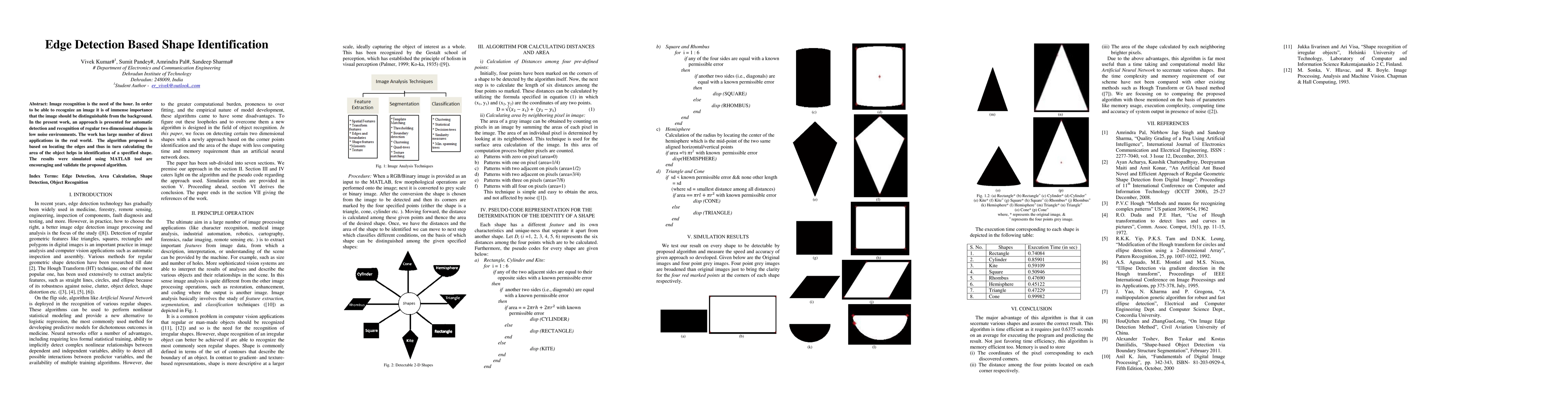Image recognition is the need of the hour. In order to be able to recognize an image, it is of immense importance that the image should be distinguishable from the background. In the present work, an approach is presented for automatic detection and recognition of regular 2D shapes in low noise environments. The work has a large number of direct applications in the real world. The algorithm proposed is based on locating the edges and thus, in turn calculating the area of the object helps in identification of a specified shape. The results were simulated using MATLAB tool are encouraging and validate the proposed algorithm. Index Terms: Edge Detection, Area Calculation, Shape Detection, Object Recognition