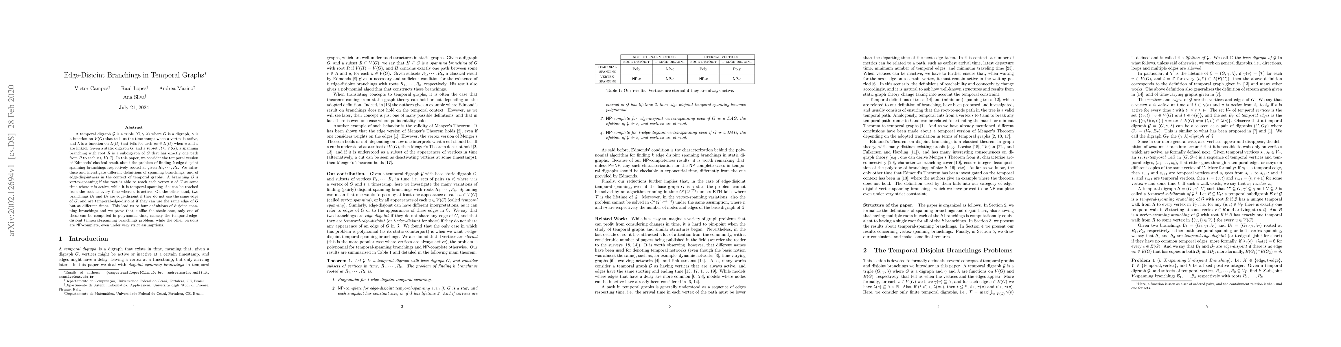 This paper explores temporal versions of Edmonds' problem on finding edge-disjoint spanning branchings in temporal graphs, introducing four definitions of spanning and edge-disjoint branchings. It proves that only temporal-edge-disjoint temporal-spanning branchings can be computed in polynomial time, while the other versions are NP-complete.