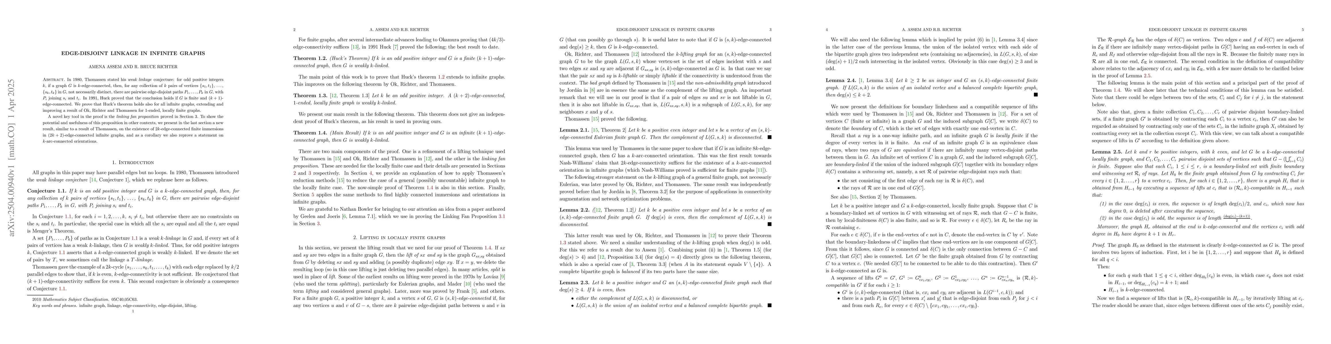 This research paper proves Thomassen's Weak Linkage conjecture for infinite graphs, extending a previous result to 1-ended, locally finite graphs. It also presents new results on edge-disjoint linkage in infinite graphs.