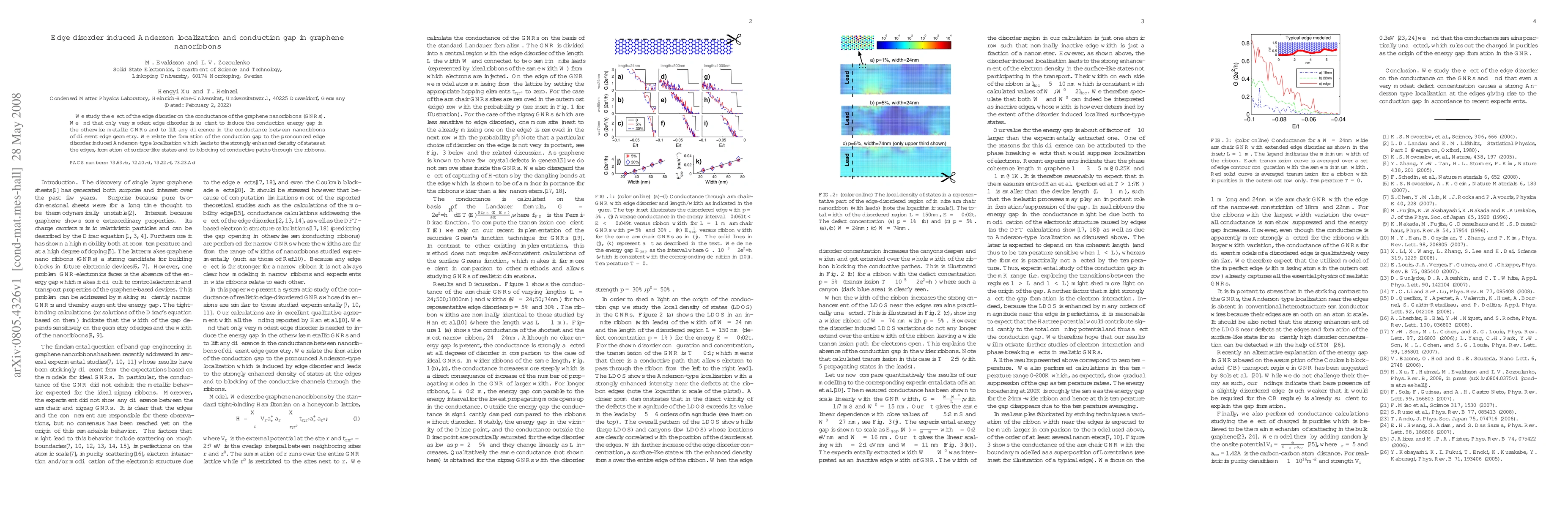 The study reveals that minimal edge disorder in graphene nanoribbons can induce an Anderson localization effect, leading to the emergence of a conduction energy gap and equalizing the conductance across different edge geometries. This phenomenon is attributed to the increased density of edge-localized states and blocked conductive paths.