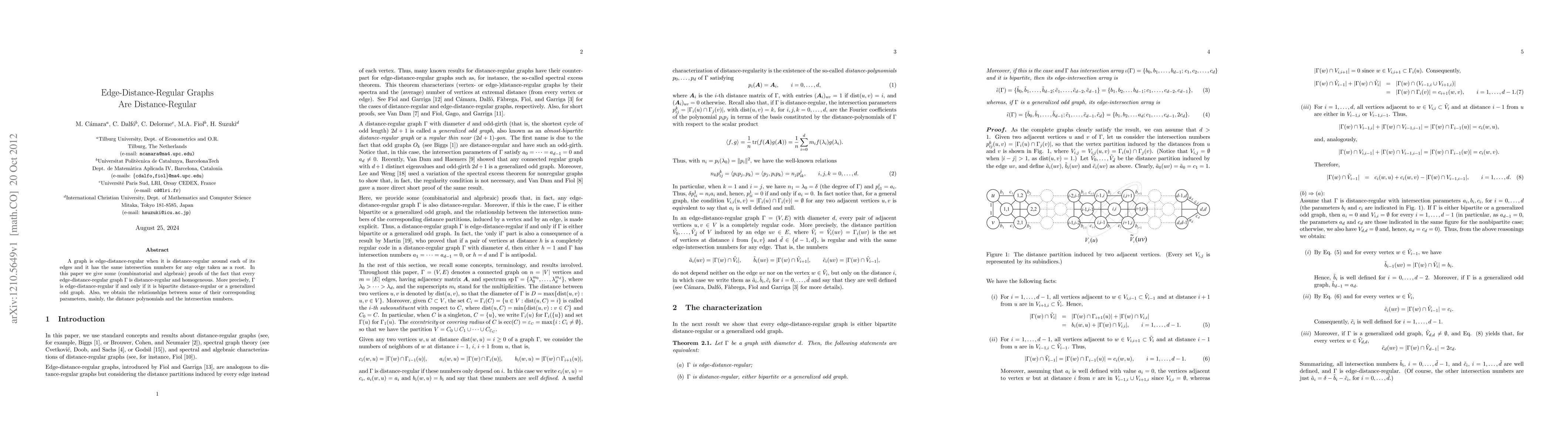 Summary: This paper proves that edge-distance-regular graphs are distance-regular and homogeneous, identifying them as either bipartite distance-regular graphs or generalized odd graphs, and clarifies relationships between their distance polynomials and intersection numbers.