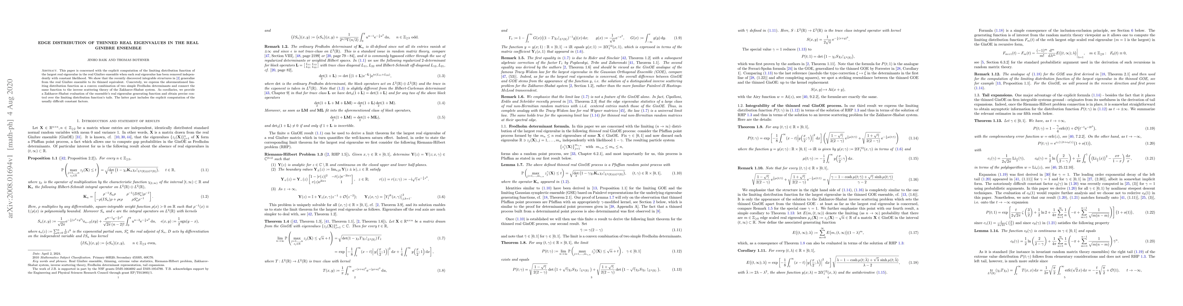 This paper computes the limiting distribution of the largest real eigenvalue in the thinned real Ginibre ensemble, showing that integrable structures generalize from the original ensemble. It connects this distribution to Fredholm determinants and the inverse scattering theory of the Zakharov-Shabat system, providing precise control over the distribution's tails and computing difficult constant factors.
