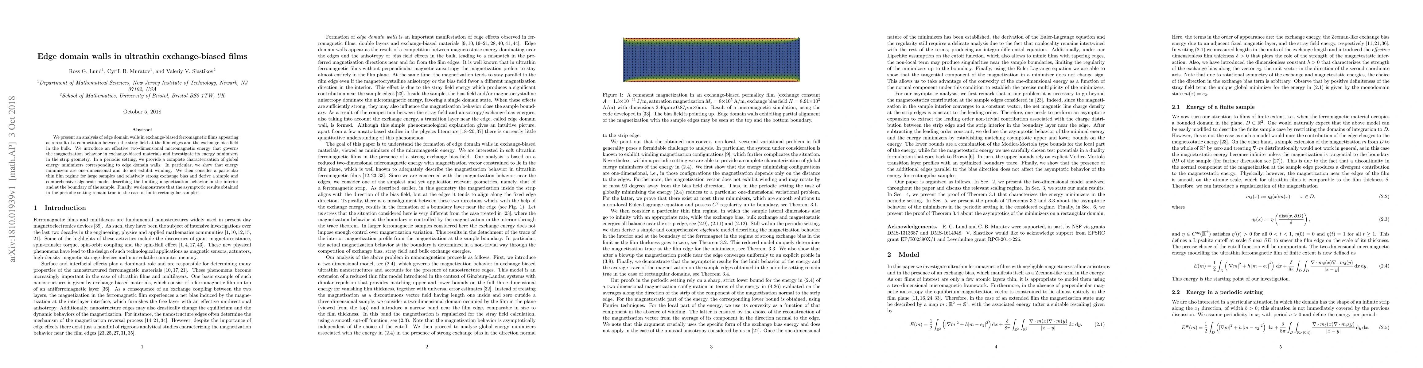 This research investigates edge domain walls in ultrathin exchange-biased films, revealing how stray fields at film edges compete with bulk exchange bias fields. It presents a comprehensive micromagnetic model and shows that edge domain walls are one-dimensional and non-winding, providing an algebraic model for magnetization behavior in large, strongly exchange-biased thin films.