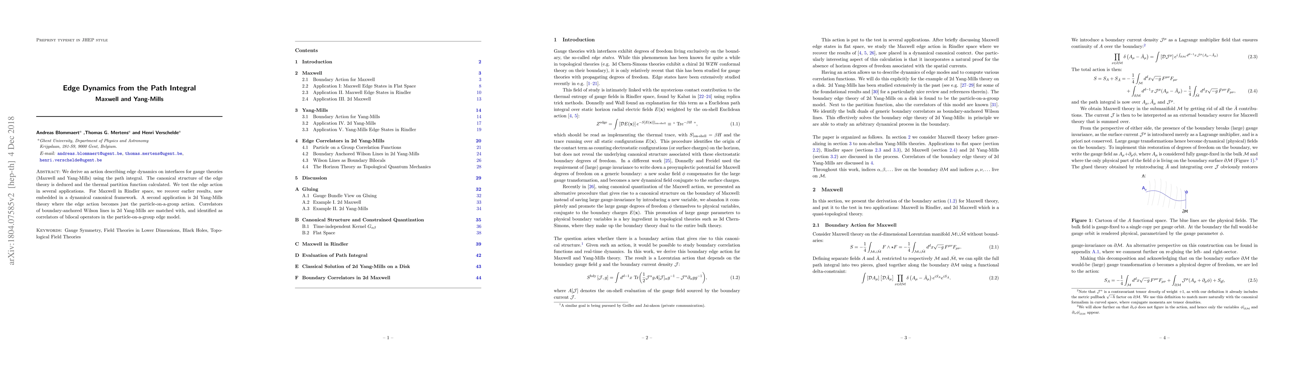 This paper derives an action for edge dynamics in gauge theories (Maxwell and Yang-Mills) using the path integral, establishing the canonical structure and calculating the thermal partition function. It tests the edge action in applications, including recovering Maxwell results in Rindler space and identifying correlators of boundary-anchored Wilson lines in 2d Yang-Mills with bilocal operators in the particle-on-a-group model.