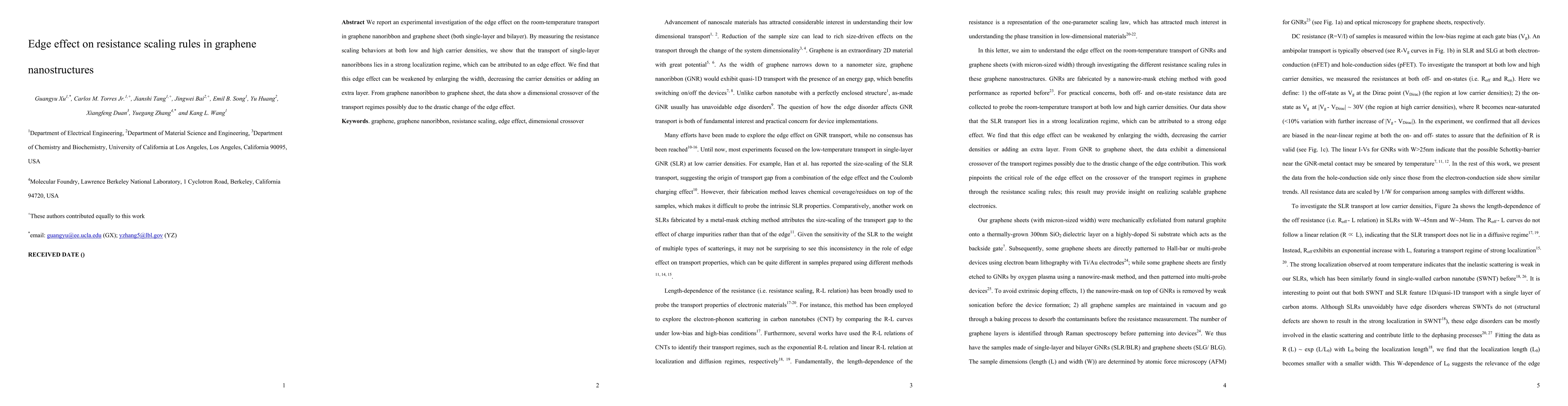 The edge effect in graphene nanostructures significantly impacts resistance scaling rules at room temperature. Enlarging width, decreasing carrier density, or adding an extra layer can weaken the edge effect, leading to dimensional crossover of transport regimes between nanoribbon and sheet configurations.