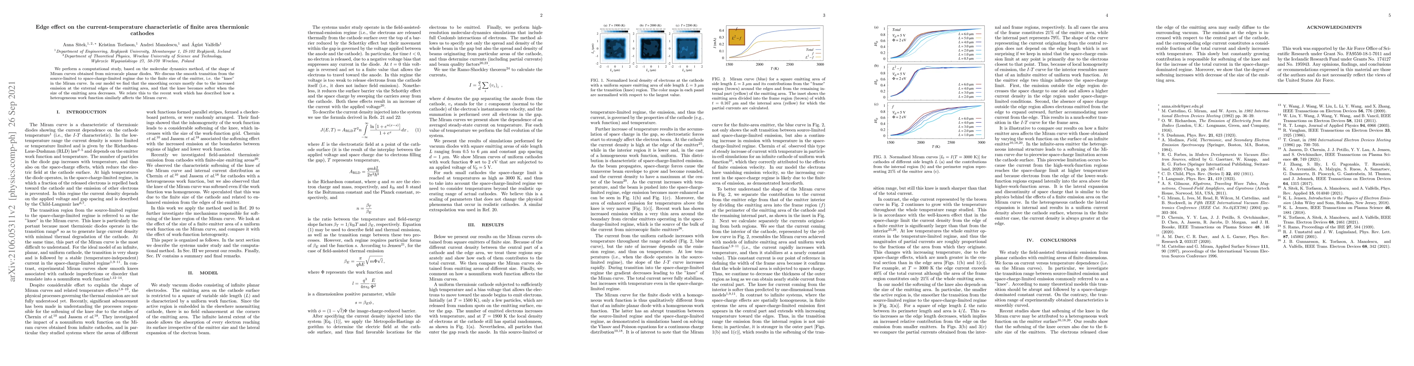 We perform a computational study, based on the molecular dynamics method, of the shape of Miram curves obtained from microscale planar diodes. We discuss the smooth transition from the source-limited to space-charge-limited regime due to the finite size of the emitter, i.e. the "knee" in the Miram curve. In our model we find that the smoothing occurs mostly due to the increased emission at the external edges of the emitting area, and that the knee becomes softer when the size of the emitting area decreases. We relate this to the recent work which has described how a heterogeneous work function similarly affects the Miram curve.