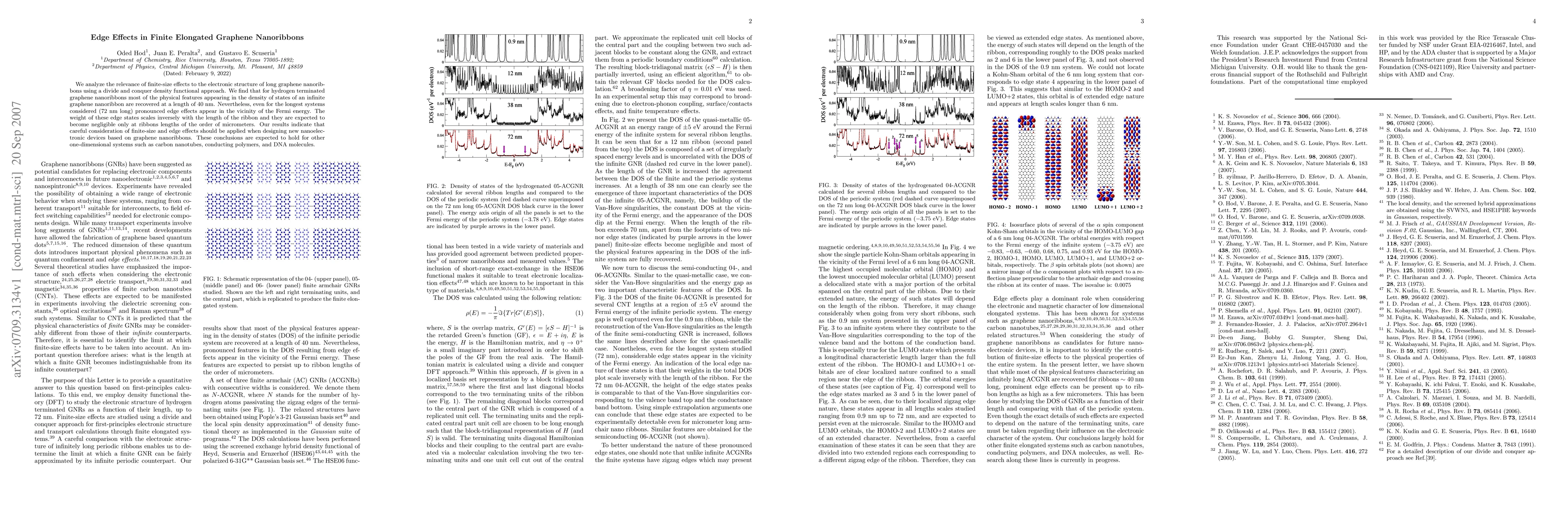 Researchers investigate finite-size effects on the electronic properties of elongated graphene nanoribbons using density functional theory. They find that while most infinite nanoribbon features reappear at 40 nm, significant edge effects persist near the Fermi energy, suggesting careful design considerations for graphene-based nanodevices.