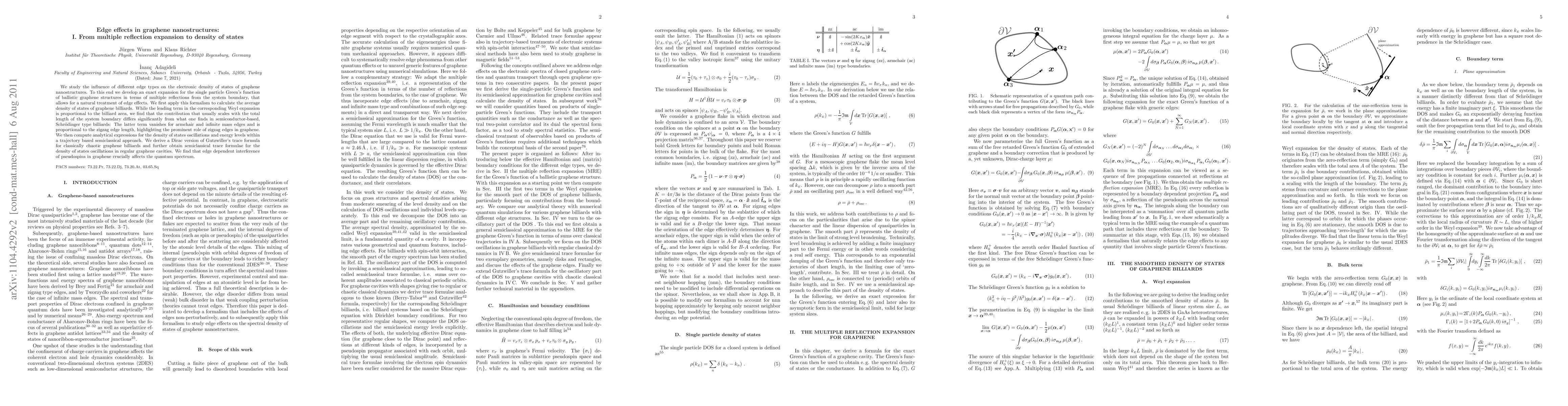 We study the influence of different edge types on the electronic density of states of graphene nanostructures. To this end we develop an exact expansion for the single particle Green's function of ballistic graphene structures in terms of multiple reflections from the system boundary, that allows for a natural treatment of edge effects. We first apply this formalism to calculate the average density of states of graphene billiards. While the leading term in the corresponding Weyl expansion is proportional to the billiard area, we find that the contribution that usually scales with the total length of the system boundary differs significantly from what one finds in semiconductor-based, Schr\"odinger type billiards: The latter term vanishes for armchair and infinite mass edges and is proportional to the zigzag edge length, highlighting the prominent role of zigzag edges in graphene. We then compute analytical expressions for the density of states oscillations and energy levels within a trajectory based semiclassical approach. We derive a Dirac version of Gutzwiller's trace formula for classically chaotic graphene billiards and further obtain semiclassical trace formulae for the density of states oscillations in regular graphene cavities. We find that edge dependent interference of pseudospins in graphene crucially affects the quantum spectrum.