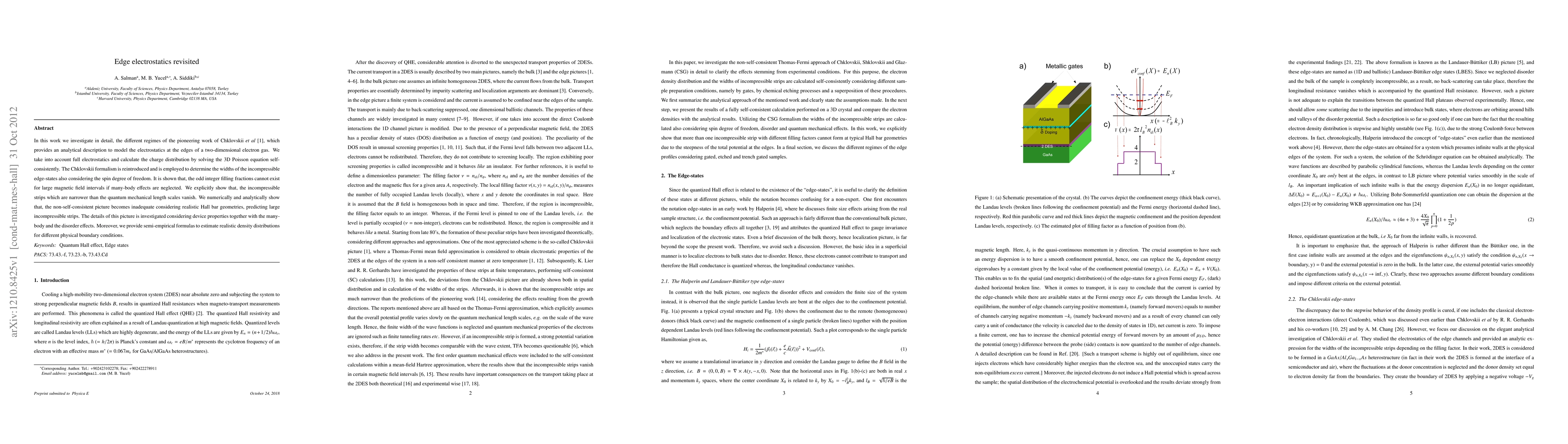 This paper revisits the electrostatics at the edges of a two-dimensional electron gas, providing a detailed analytical and numerical analysis of the Chklovskii formalism. It shows that the incompressible edge-states' widths depend on spin and many-body effects, and that odd integer filling fractions are not viable under large magnetic fields.