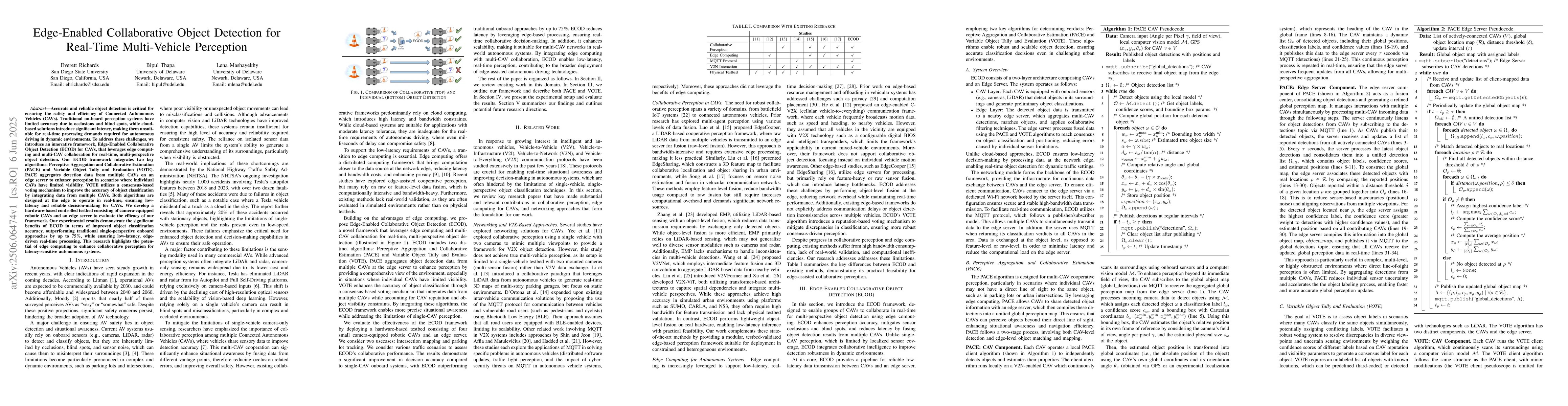 This research introduces Edge-Enabled Collaborative Object Detection for Real-Time Multi-Vehicle Perception, improving object classification accuracy by up to 75% while ensuring low-latency processing.