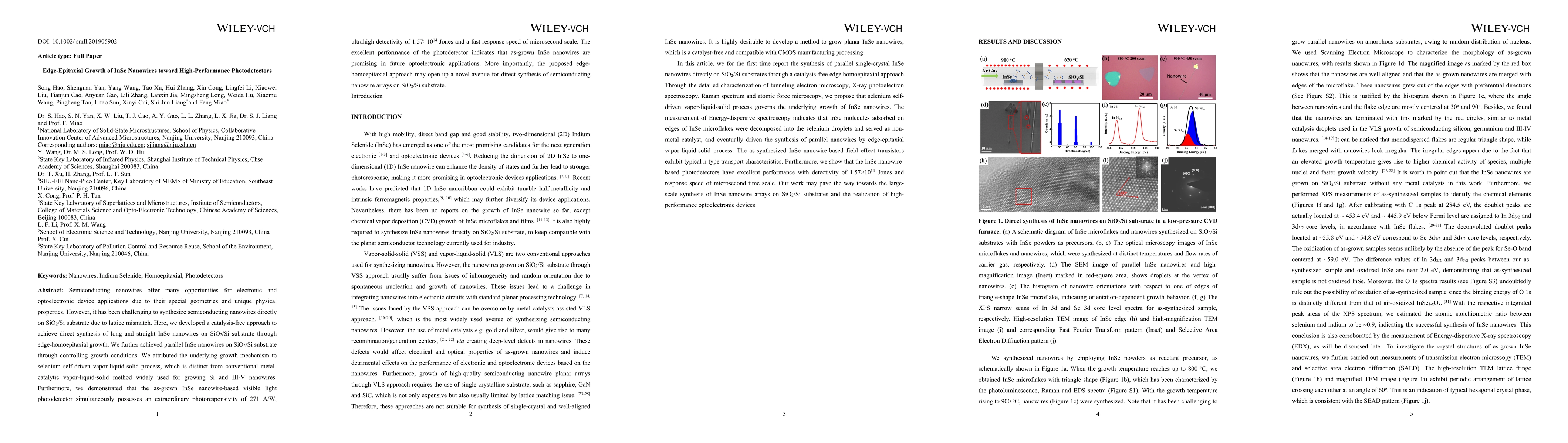 Researchers developed a method to grow InSe nanowires directly on SiO2/Si substrate without catalysts, achieving high-performance photodetectors with ultra-high sensitivity and fast response speed.