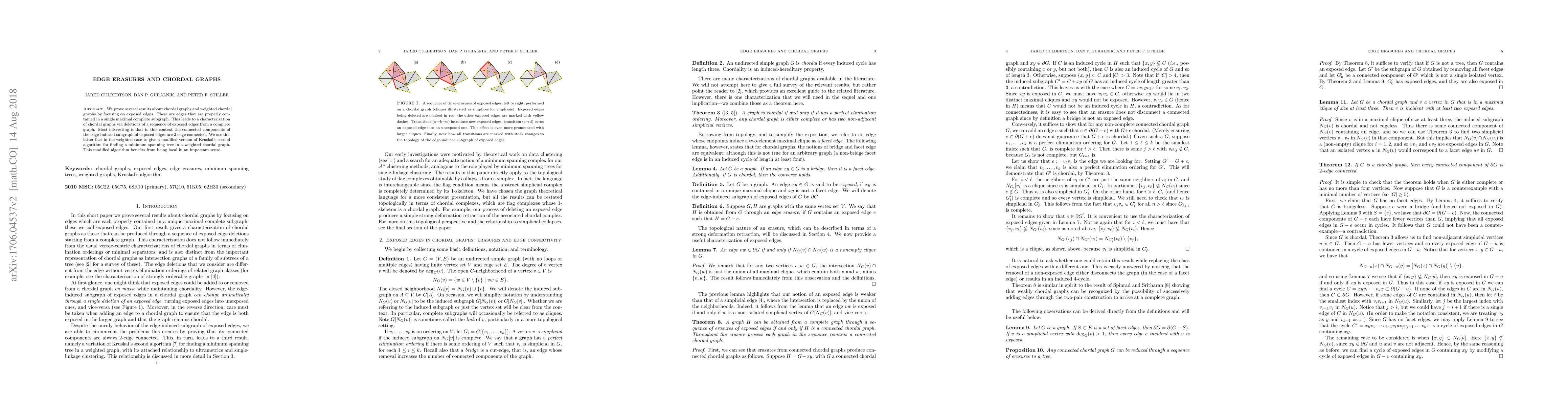 This paper characterizes chordal graphs through the deletion of exposed edges from complete graphs, revealing that the connected components of exposed edges are 2-edge connected. It also presents a localized, modified version of Kruskal's algorithm for finding minimum spanning trees in weighted chordal graphs.