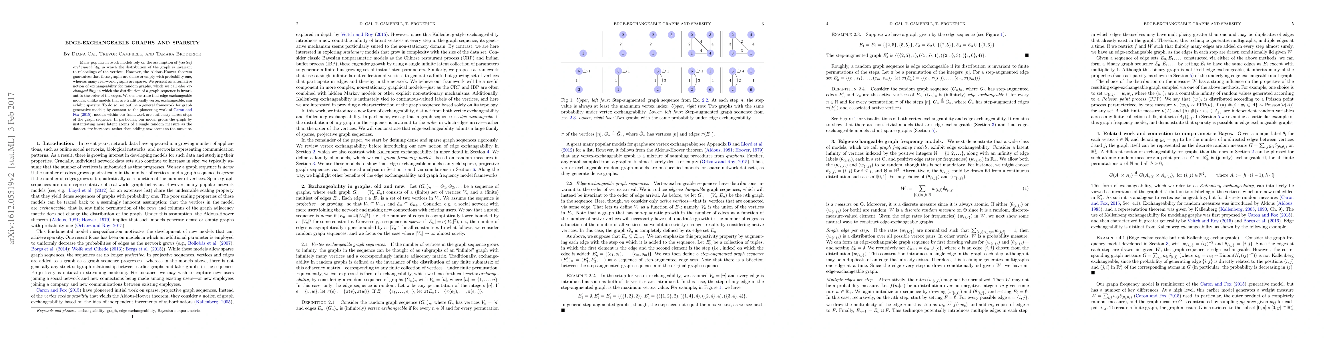 The paper introduces edge-exchangeable graphs, a new notion of exchangeability for random graphs where the distribution remains invariant under the order of edges, unlike traditional vertex exchangeable models which are dense or empty with probability one. It provides a general framework for graph generative models and demonstrates that these models can exhibit sparsity.