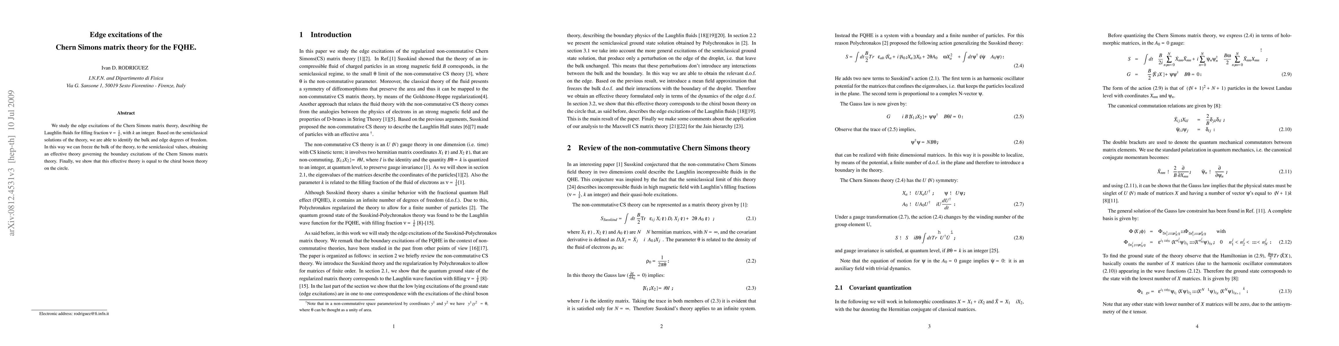 We study the edge excitations of the Chern Simons matrix theory, describing the Laughlin fluids for filling fraction $\nu=\frac{1}{k}$, with $k$ an integer. Based on the semiclassical solutions of the theory, we are able to identify the bulk and edge degrees of freedom. In this way we can freeze the bulk of the theory, to the semiclassical values, obtaining an effective theory governing the boundary excitations of the Chern Simons matrix theory. Finally, we show that this effective theory is equal to the chiral boson theory on the circle.