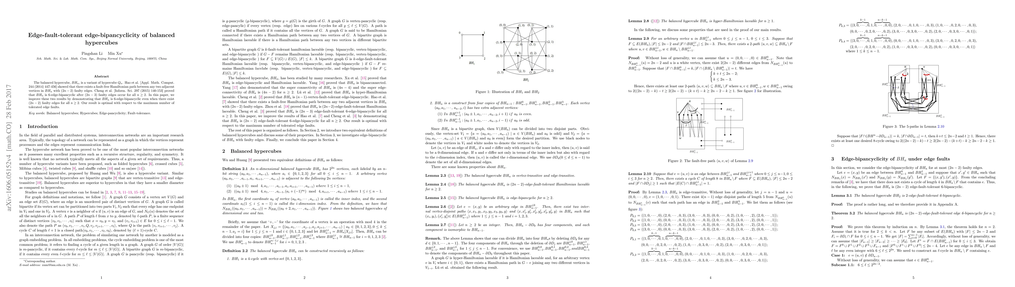 The balanced hypercube, $BH_n$, is a variant of hypercube $Q_n$. R.X. Hao et al. $(2014)$ \cite{R.X.Hao} showed that there exists a fault-free Hamiltonian path between any two adjacent vertices in $BH_n$ with $(2n-2)$ faulty edges. D.Q. Cheng et al. $(2015)$ \cite{Dongqincheng2} proved that $BH_n$ is $6$-edge-bipancyclic after $(2n-3)$ faulty edges occur for all $n\ge2$. In this paper, we improve these two results by demonstrating that $BH_n$ is $6$-edge-bipancyclic even when there exist $(2n-2)$ faulty edges for all $n\ge2$. Our result is optimal with respect to the maximum number of tolerated edge faults.
