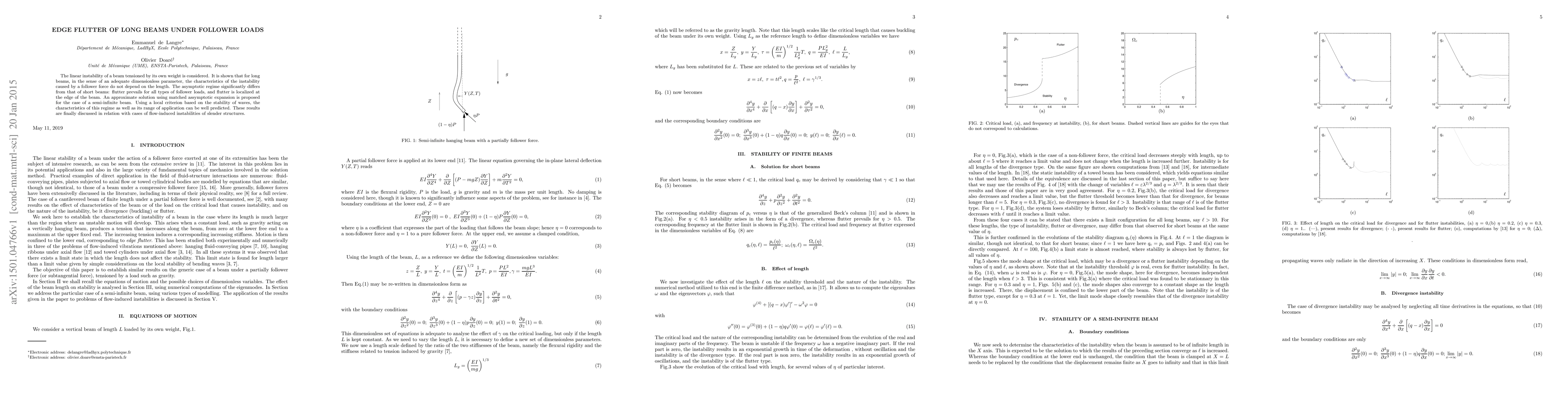 This paper investigates the linear instability of long beams under follower loads, showing that edge flutter is predominant regardless of the beam's length. An approximate solution using matched asymptotic expansion is proposed for semi-infinite beams, and a local criterion is used to predict the characteristics and applicability of this flutter regime.
