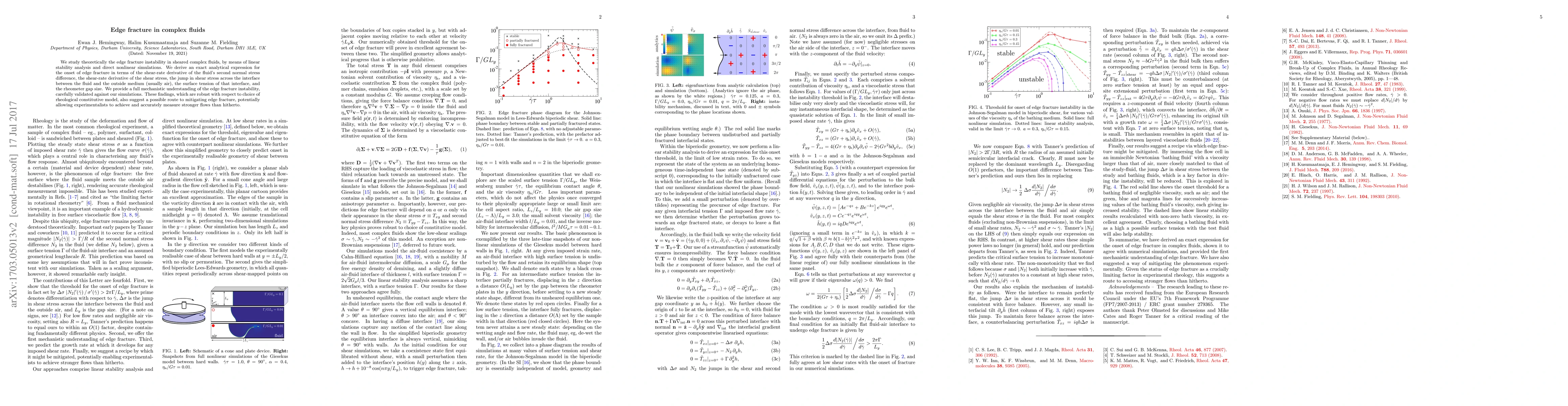 This paper theoretically investigates edge fracture instability in sheared complex fluids using linear stability analysis and nonlinear simulations, deriving an exact analytical expression for its onset. The findings provide a mechanistic understanding of the instability and suggest potential methods to mitigate it, enabling stronger fluid flows in experiments.