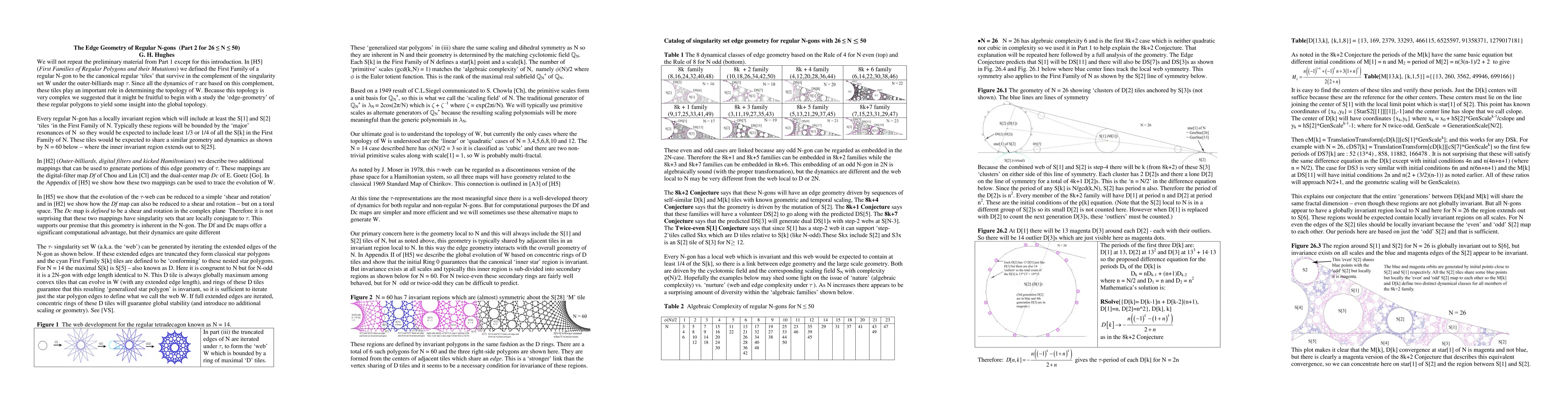 There are multiple mappings that can be used to generate what we call the 'edge geometry' of a regular N-gon, but they are all based on piecewise isometries acting on the extended edges of N to form a 'singularity' set W. This singularity set is also known as the 'web' because it is connected and consists of rays or line segments, with possible accumulation points in the limit. We will use three such maps here, all of which appear to share the same local geometry of W. These mappings are the outer-billiards map Tau, the digital-filter map Df and the 'dual-center' map Dc. In 'Outer-billiards, digital filters and kicked Hamiltonians' (arXiv:1206.5223) we show that the Df and Dc maps are equivalent to a 'shear and rotation' in a toral space and the complex plane respectively, and in 'First Families of Regular Polygons and their Mutations' (arXiv:1612.09295) we show that the Tau-web W can also be reduced to a shear and rotation. This equivalence of maps supports the premise that this web geometry is inherent in the N-gon. Since the topology of W is complex, we hope to make some progress by studying the region local to N. The edges of every regular N-gon are part of a Tau-invariant region local to N. The emphasis here are the S[1] and S[2] First Family tiles adjacent to N, but we will also study their interaction with neighboring tiles. Since all S[k] tiles evolve in a multi-step fashion, it is possible to make predictions about the 'next-generation' tiles which survive in the web. The Edge Conjecture defines just 8 classes of N-gons so there is an 'Eightfold Way' for regular polygons.