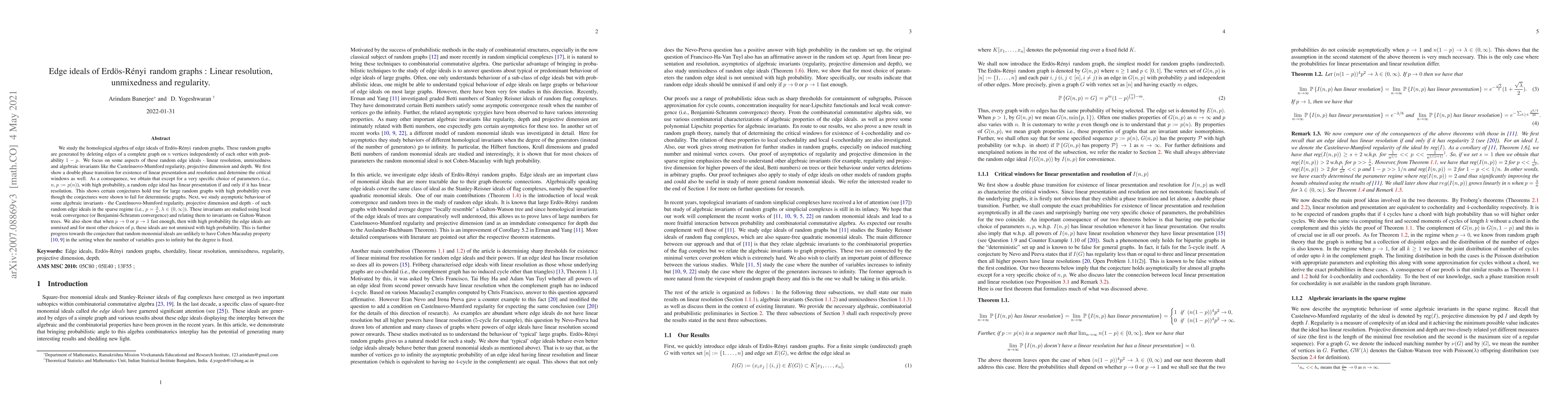 This paper studies edge ideals of Erdős-Rényi random graphs, focusing on linear resolution, unmixedness, and algebraic invariants like regularity and depth. It shows a double phase transition for existence of linear presentation and resolution, and high probability that random edge ideals have linear presentation if they are resolved.