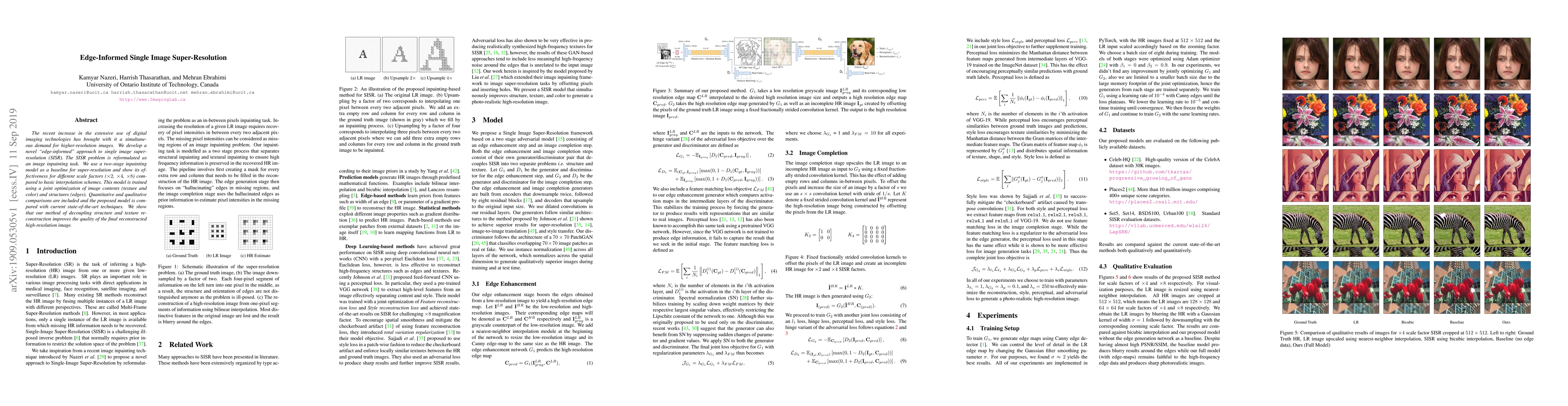 This paper proposes an edge-informed approach to single image super-resolution (SISR) by reformulating it as an image inpainting task. The method decouples structure and texture reconstruction, showing improved performance over basic interpolation and state-of-the-art techniques for various scale factors.