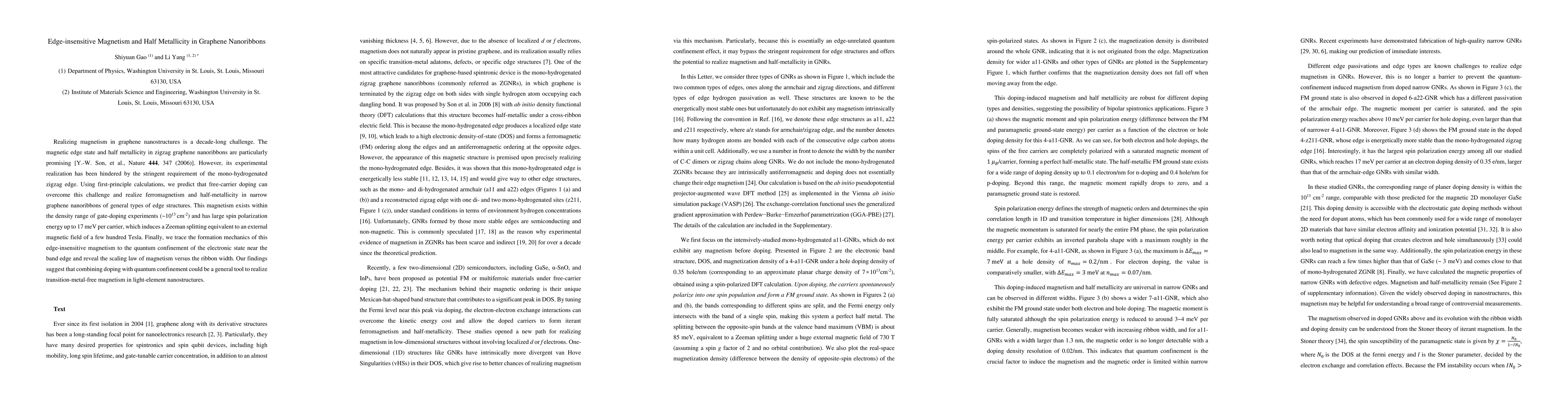 This study demonstrates that free-carrier doping can induce ferromagnetism and half-metallicity in narrow graphene nanoribbons regardless of edge structure, overcoming the experimental challenge of requiring a mono-hydrogenated zigzag edge. The magnetism is sustained by quantum confinement effects and is scalable with ribbon width.