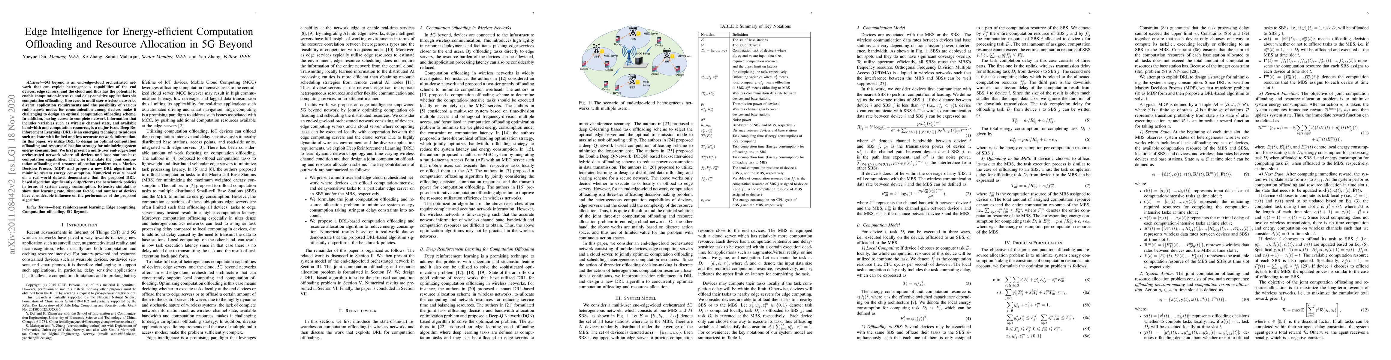 This paper proposes a Deep Reinforcement Learning (DRL) algorithm to optimize computation offloading and resource allocation in 5G beyond networks, aiming to minimize system energy consumption. The DRL approach effectively addresses the challenges of diverse application requirements and limited network information, outperforming benchmark policies in simulations.