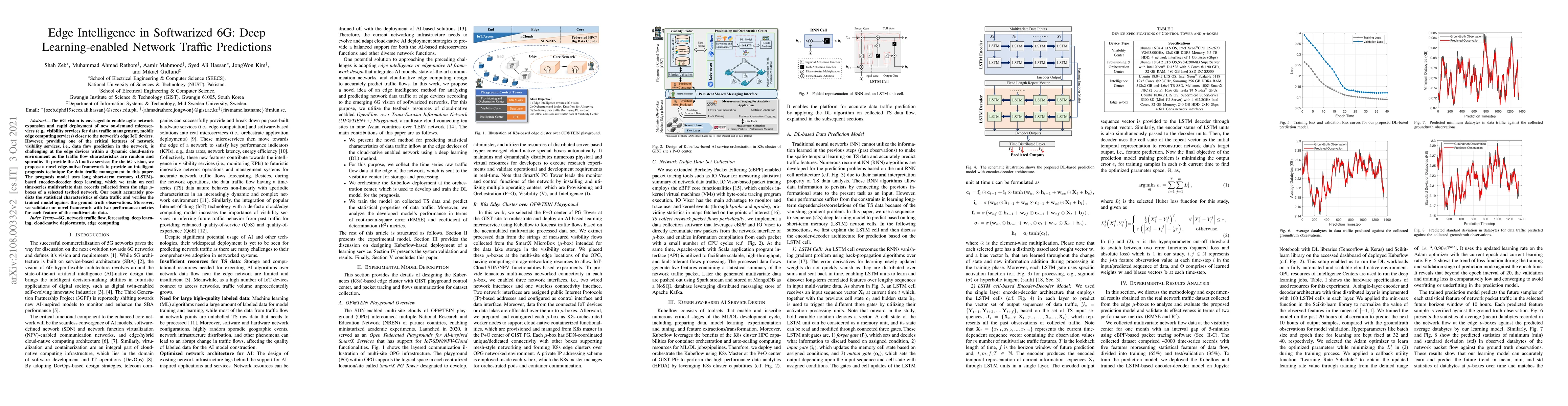 The 6G vision is envisaged to enable agile network expansion and rapid deployment of new on-demand microservices (e.g., visibility services for data traffic management, mobile edge computing services) closer to the network's edge IoT devices. However, providing one of the critical features of network visibility services, i.e., data flow prediction in the network, is challenging at the edge devices within a dynamic cloud-native environment as the traffic flow characteristics are random and sporadic. To provide the AI-native services for the 6G vision, we propose a novel edge-native framework to provide an intelligent prognosis technique for data traffic management in this paper. The prognosis model uses long short-term memory (LSTM)-based encoder-decoder deep learning, which we train on real time-series multivariate data records collected from the edge $\mu$-boxes of a selected testbed network. Our result accurately predicts the statistical characteristics of data traffic and verifies the trained model against the ground truth observations. Moreover, we validate our novel framework with two performance metrics for each feature of the multivariate data.